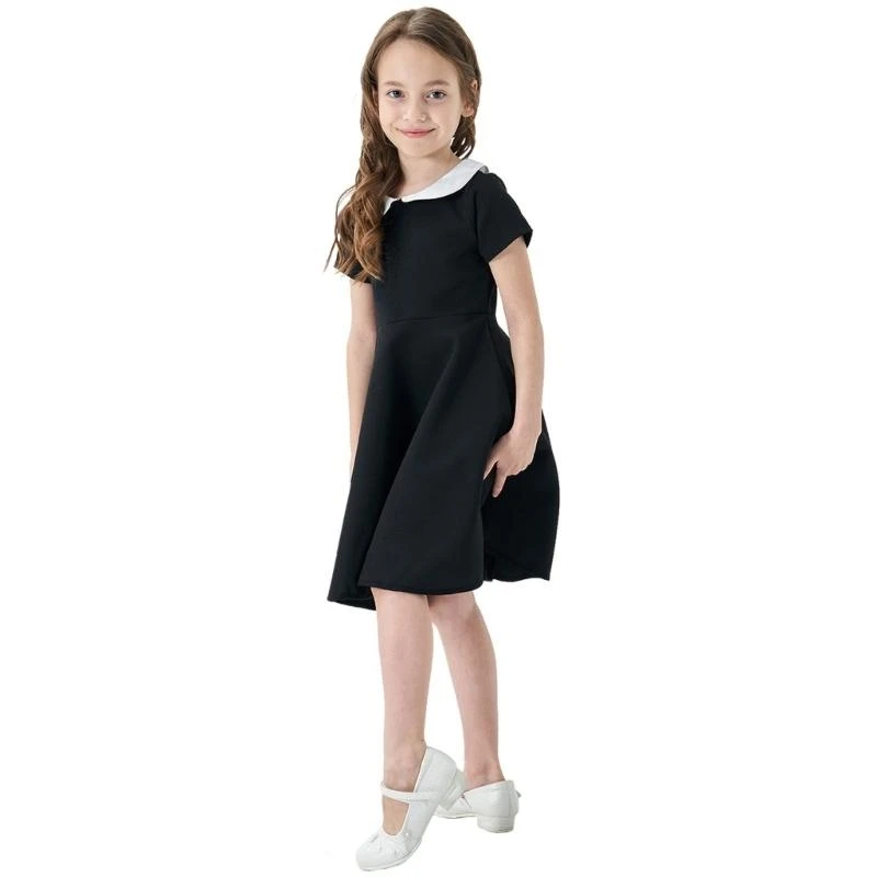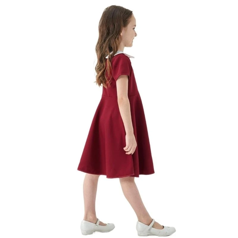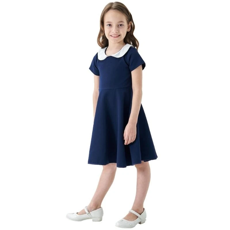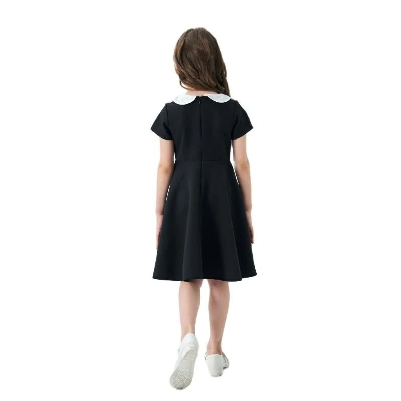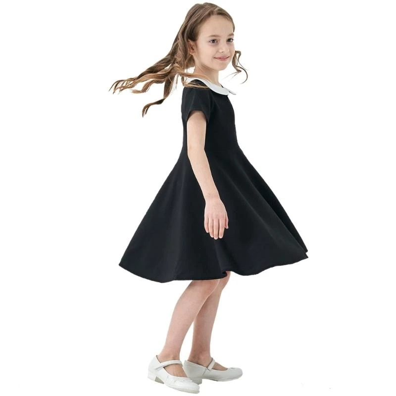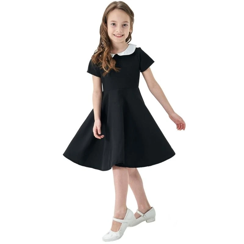 Vestido de manga corta, vestido de niña, vestido de corte A, corte holgado informal, vestido de color contrastante para niños universitarios.