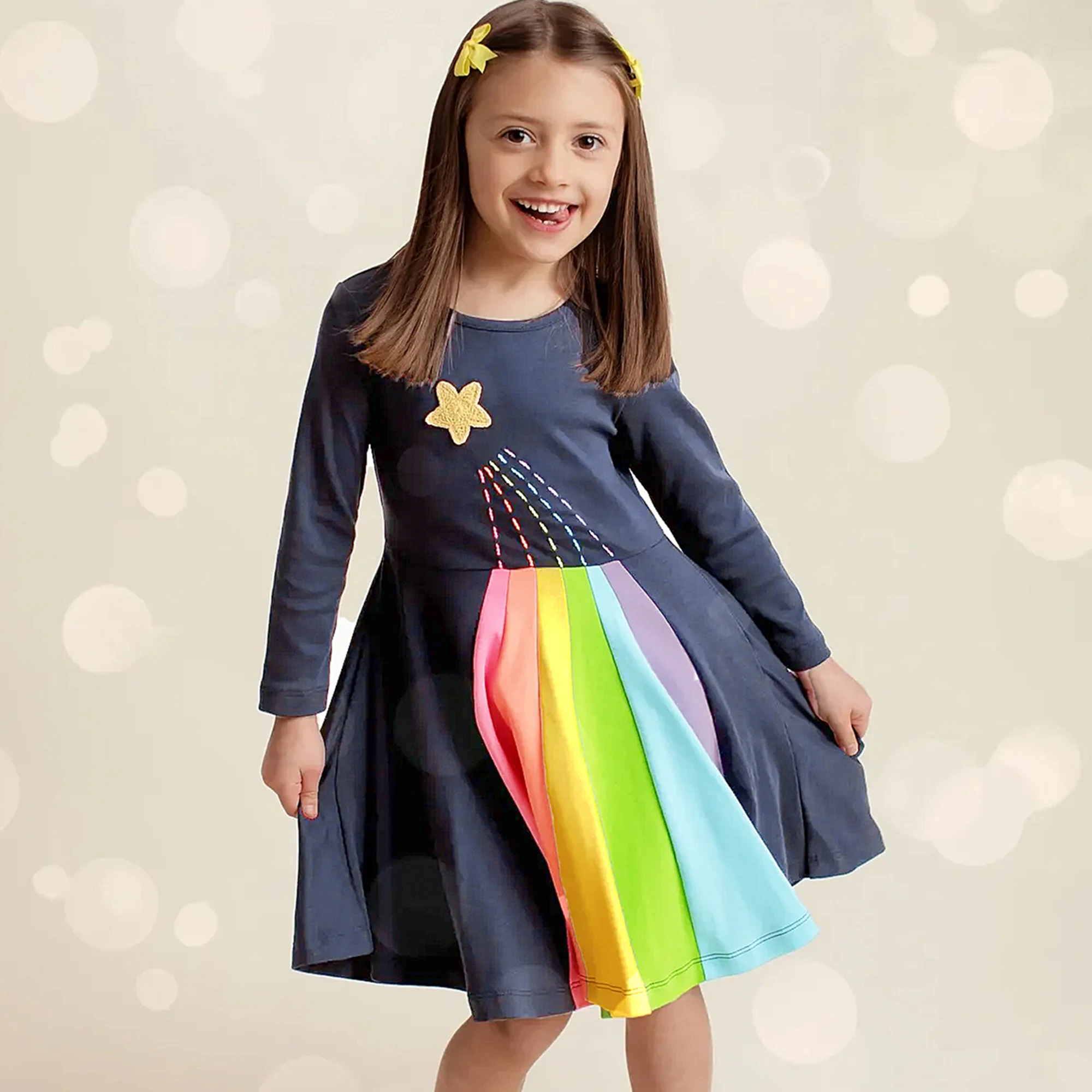Comprar Vestido de manga larga con cuello redondo para niña, ropa de princesa para fiesta, 3, 4, 5, 6 y 7 años, 2024