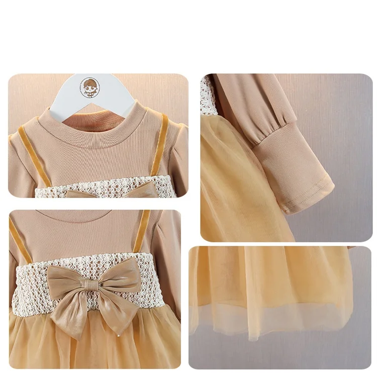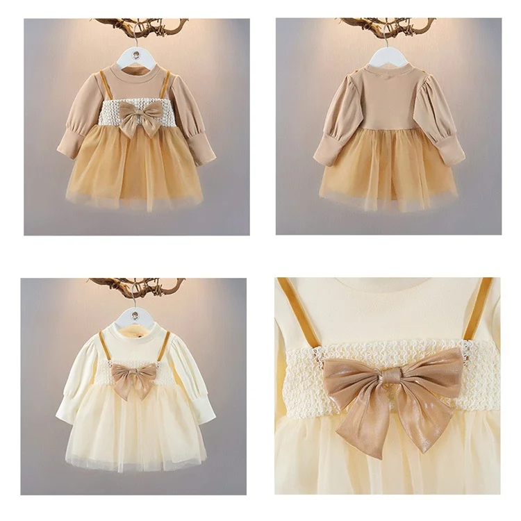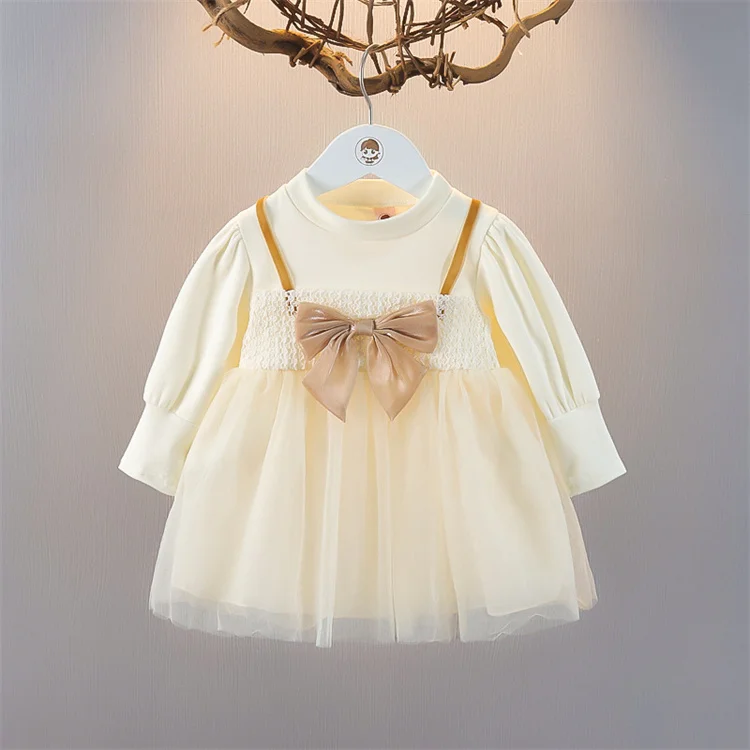 Comprar Vestido de manga larga con Lazo de algodón para bebé recién nacido, primavera y otoño, novedad