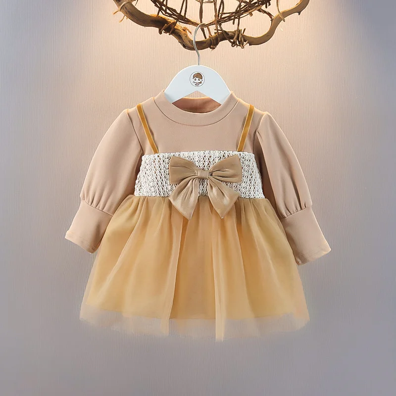 Comprar Vestido de manga larga con Lazo de algodón para bebé recién nacido, primavera y otoño, novedad