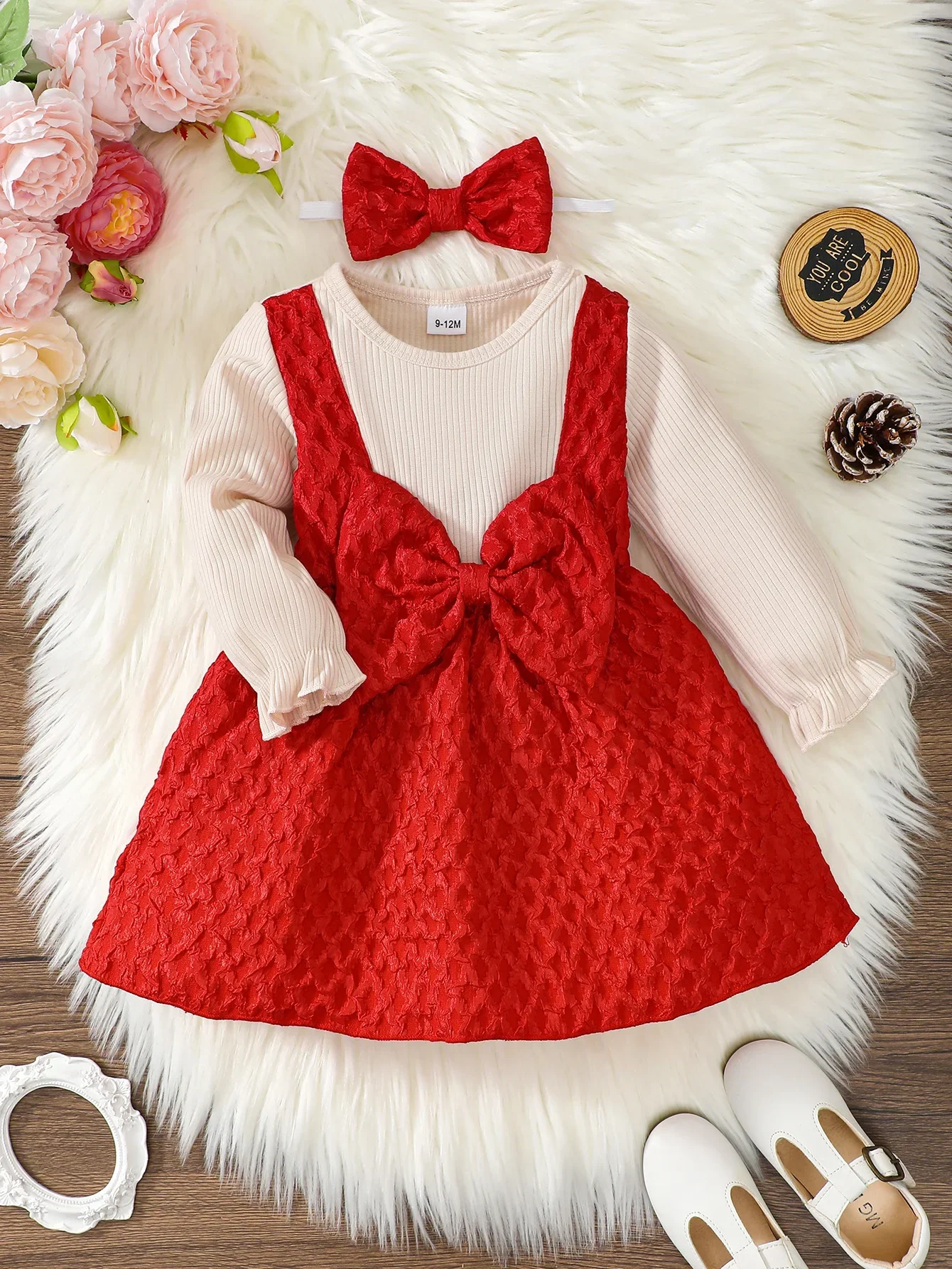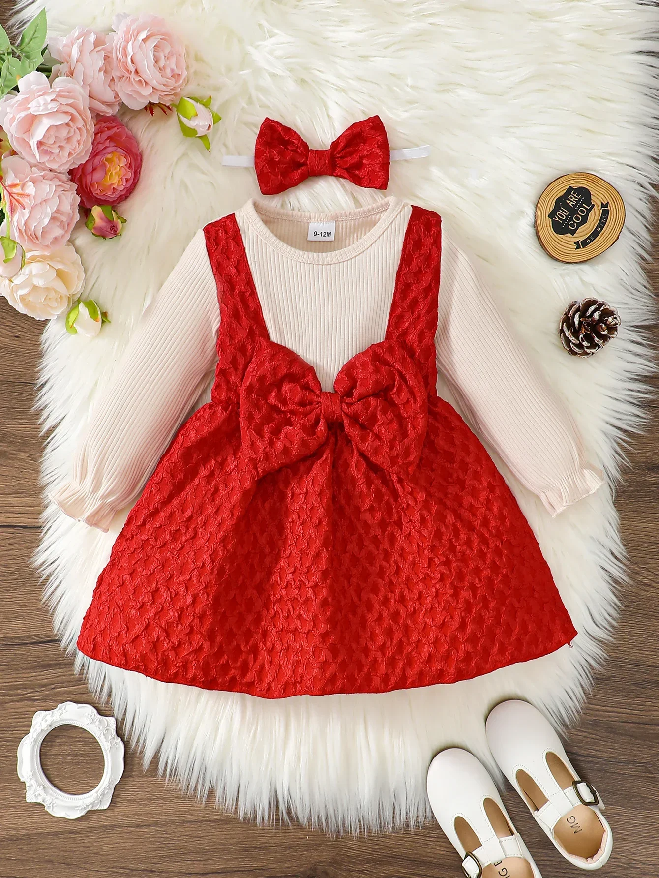Vestido de manga larga para niña recién nacida, ropa de princesa con lazo grande, de Año Nuevo y Navidad, de 0 a 3 años