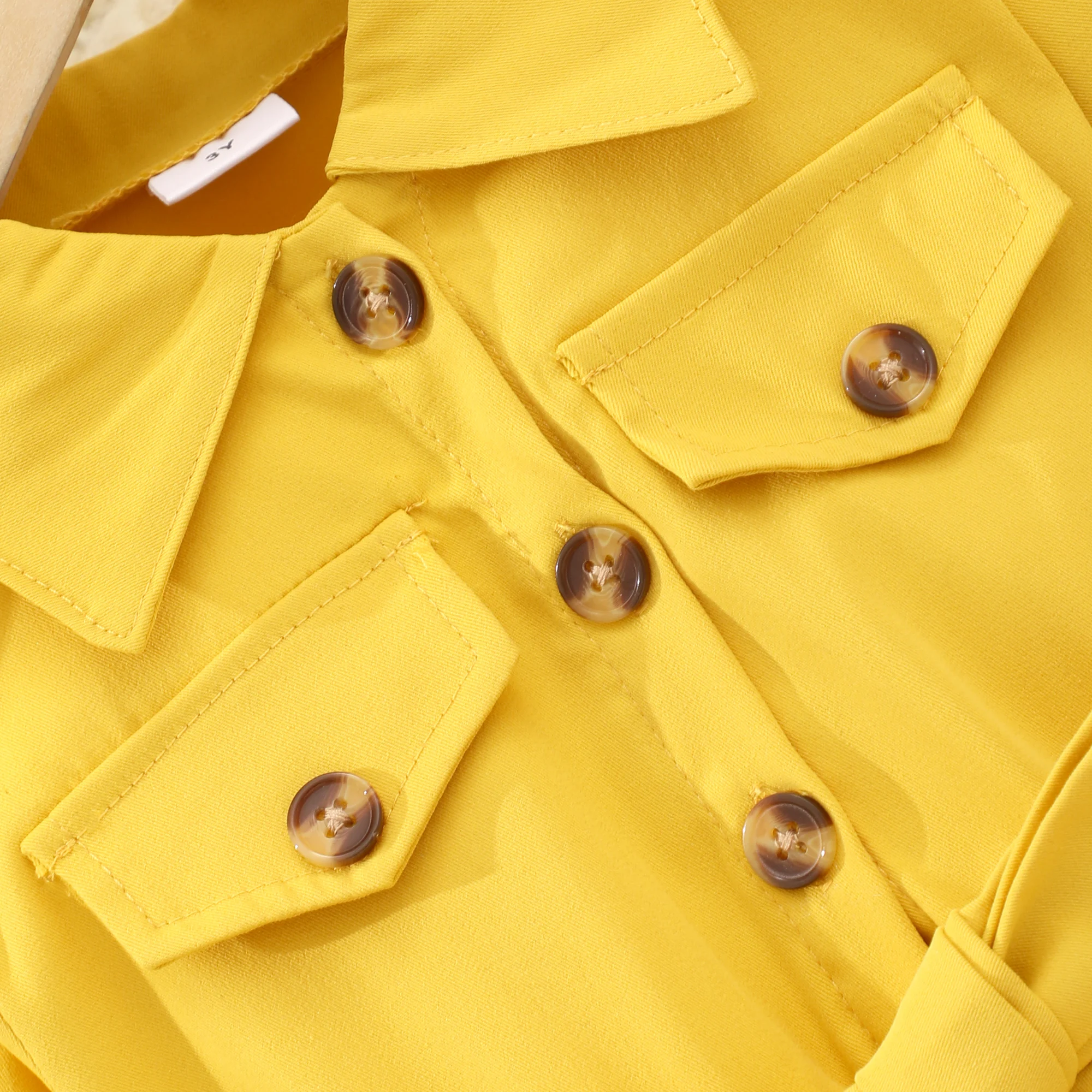 Comprar Vestido de manga larga para niña, solapa de Color sólido con cinturón de sombrero, ropa Simple y cómoda, 3, 4, 5, 6 y 7 años