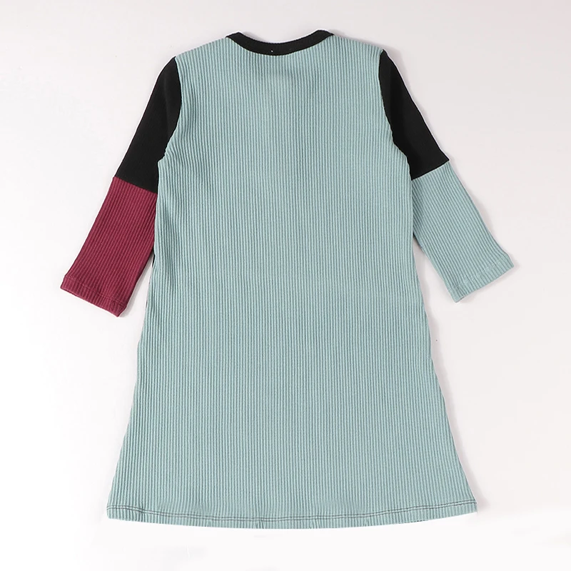 Comprar Vestido de manga larga para niñas, ropa de invierno con cremallera frontal, cuello con cremallera, parches de contraste