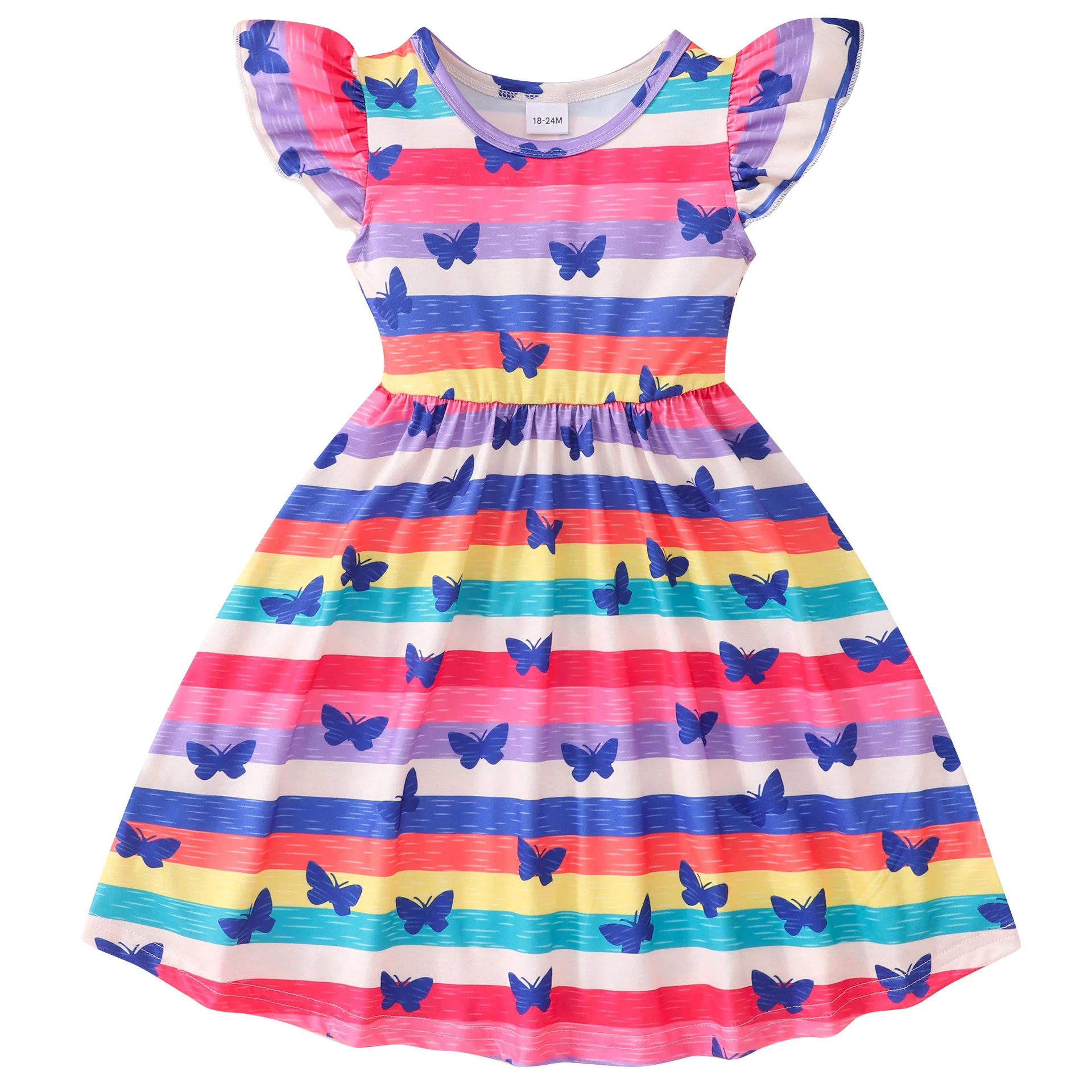 Comprar Vestido de manga voladora para niñas, tutú de fiesta con volantes de mariposa arcoíris, disfraz de algodón para recién nacidos de 2 a 9 años, novedad