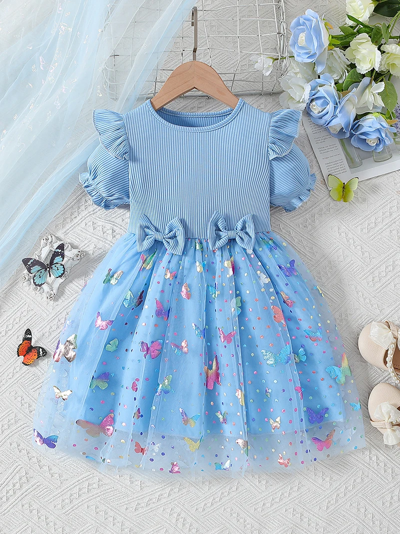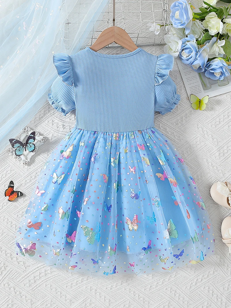 Comprar Vestido de mariposa de verano para niñas, bonito vestido de princesa de malla de retales para niños, ropa de moda de estilo europeo y americano para niños