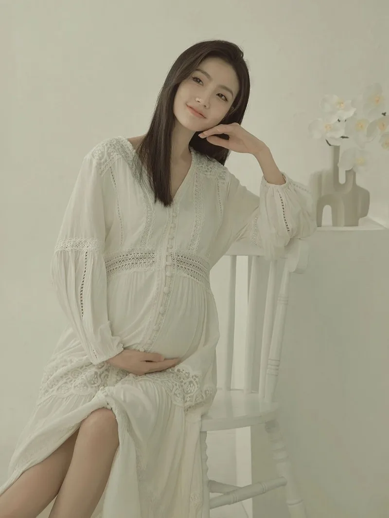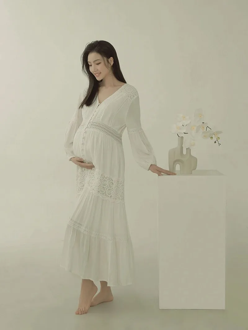 Comprar Vestido de maternidad de encaje blanco, vestido elegante para Baby Shower, ropa de casa para mujer embarazada, vestido largo de picotografía de maternidad con cuello en V