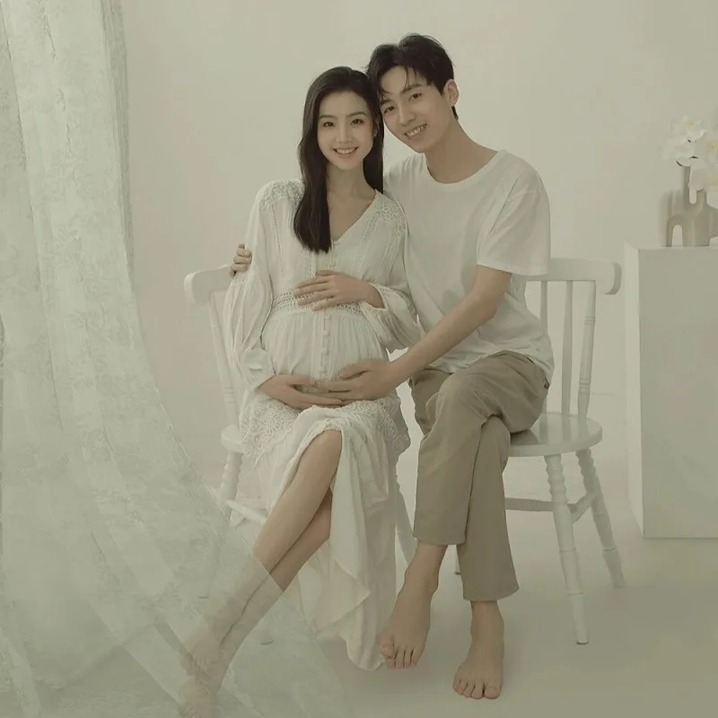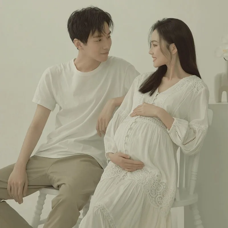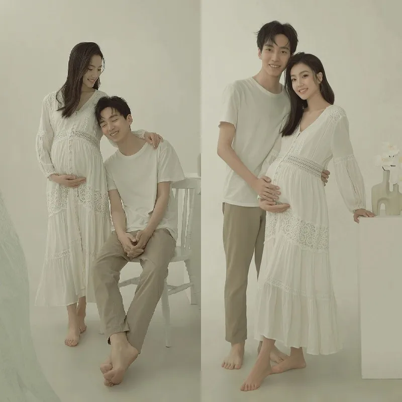 Comprar Vestido de maternidad de encaje blanco, vestido elegante para Baby Shower, ropa de casa para mujer embarazada, vestido largo de picotografía de maternidad con cuello en V