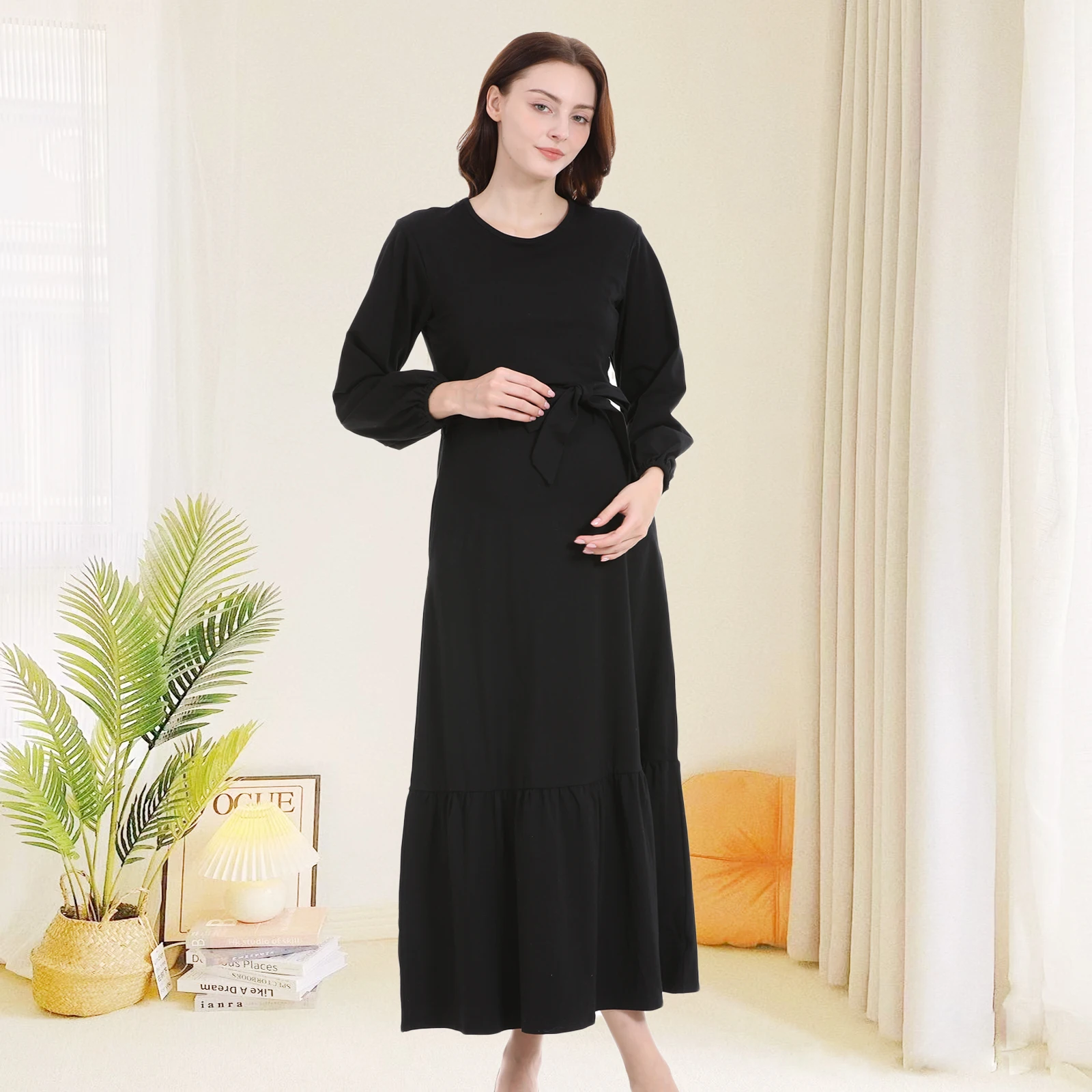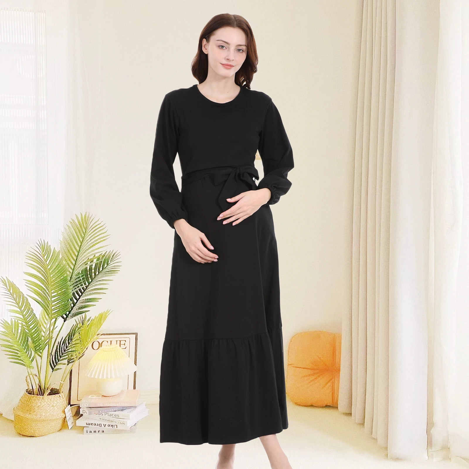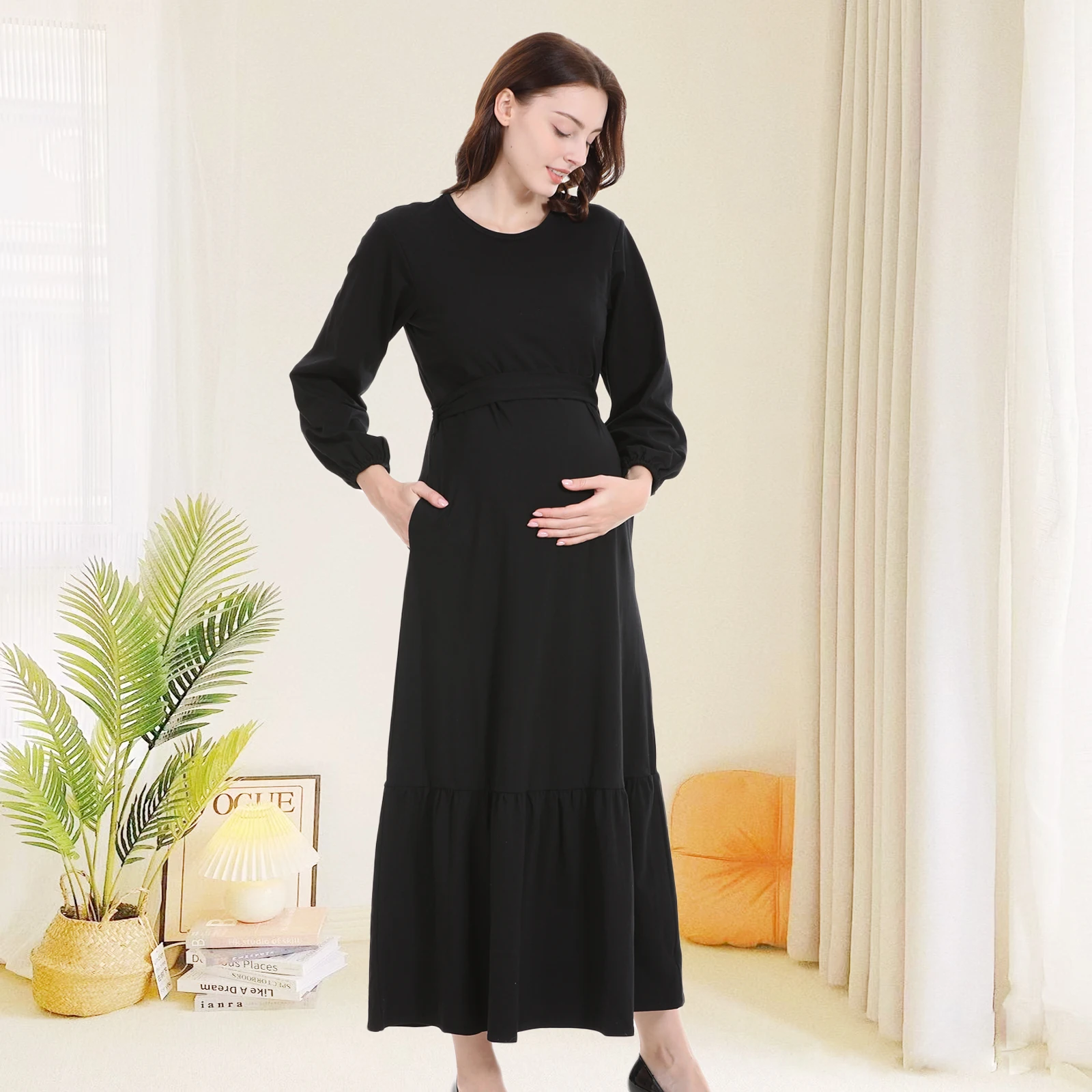 1). Descripciones: vestido de maternidad sólido, vestidos de lactancia, ropa de enfermería, vestido largo plisado informal de primavera y otoño para mujeres embarazadas de talla grande