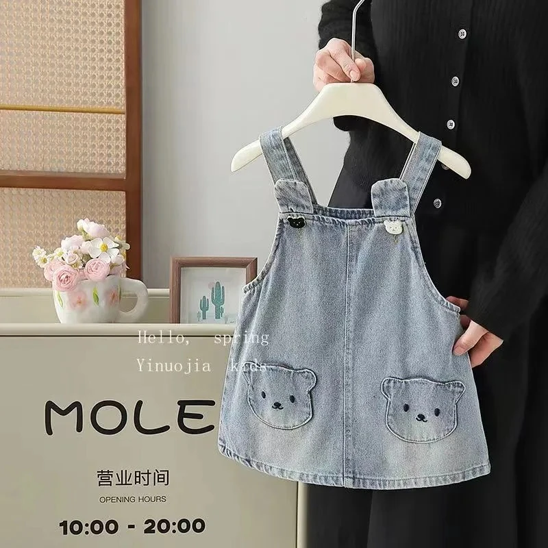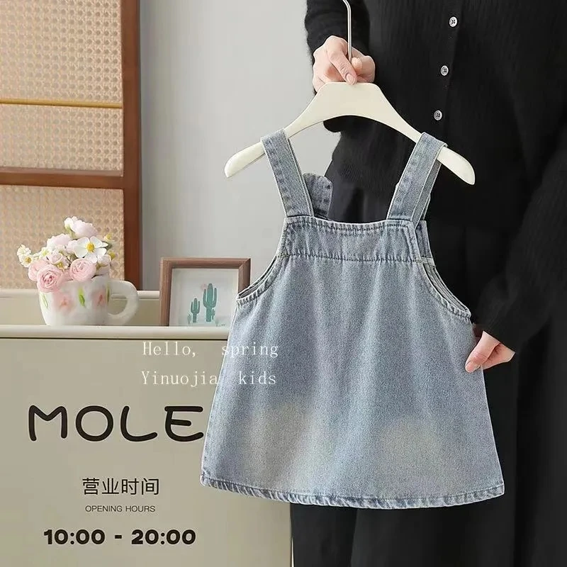 Comprar Vestido de mezclilla para niña, vestido de princesa para bebé, tirantes para el hombro, estilo fino de verano, camisola vaquera para niños