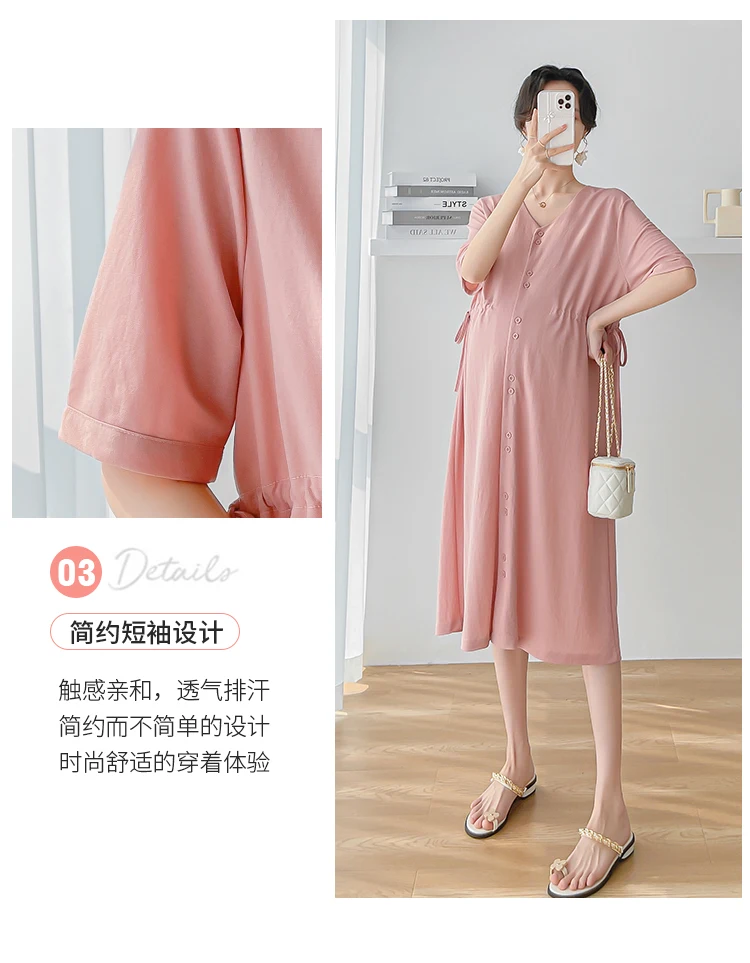 Comprar Vestido Midi recto suelto para mujer embarazada, ropa de maternidad con cordón, cintura delgada, ropa de lactancia, elegante, verano, #053