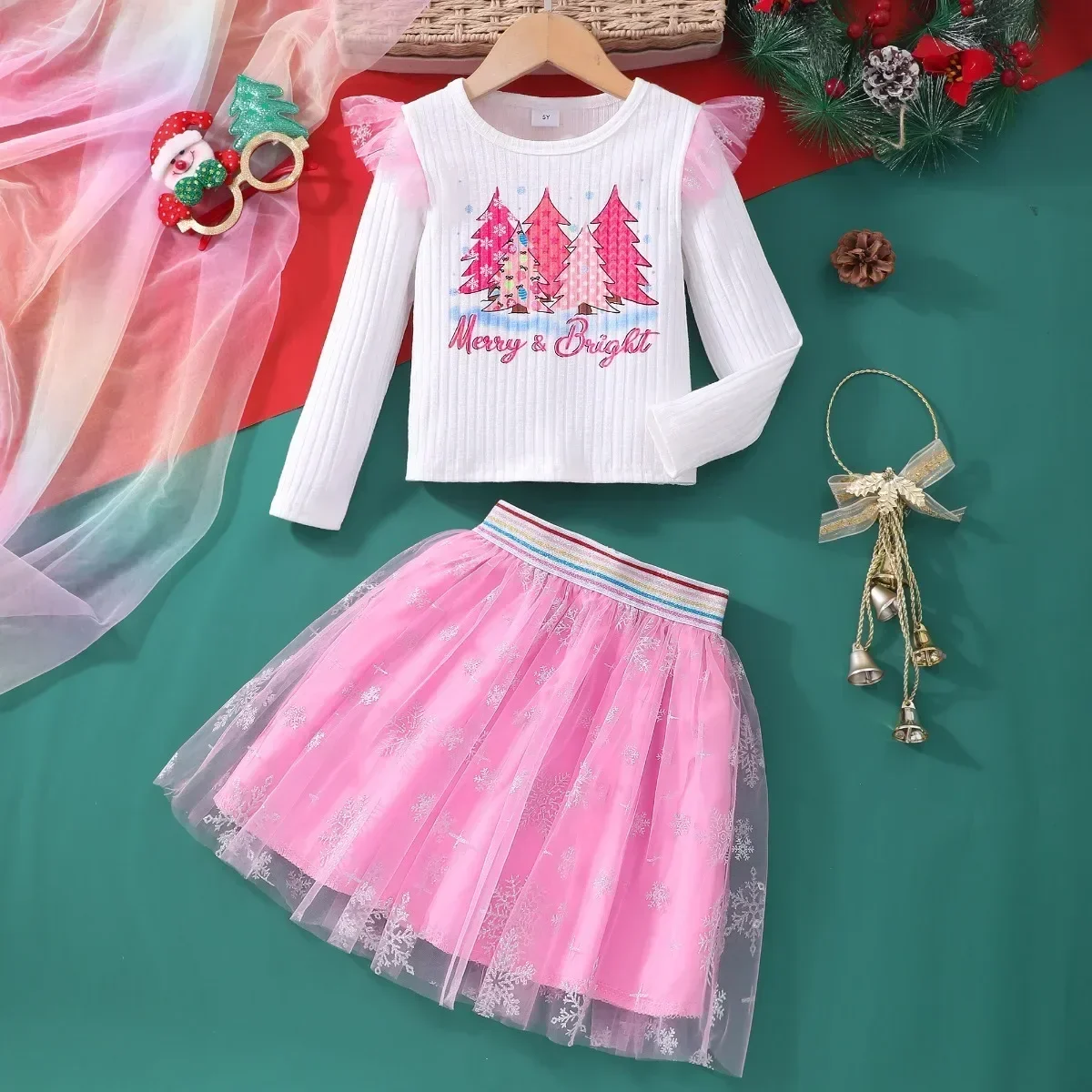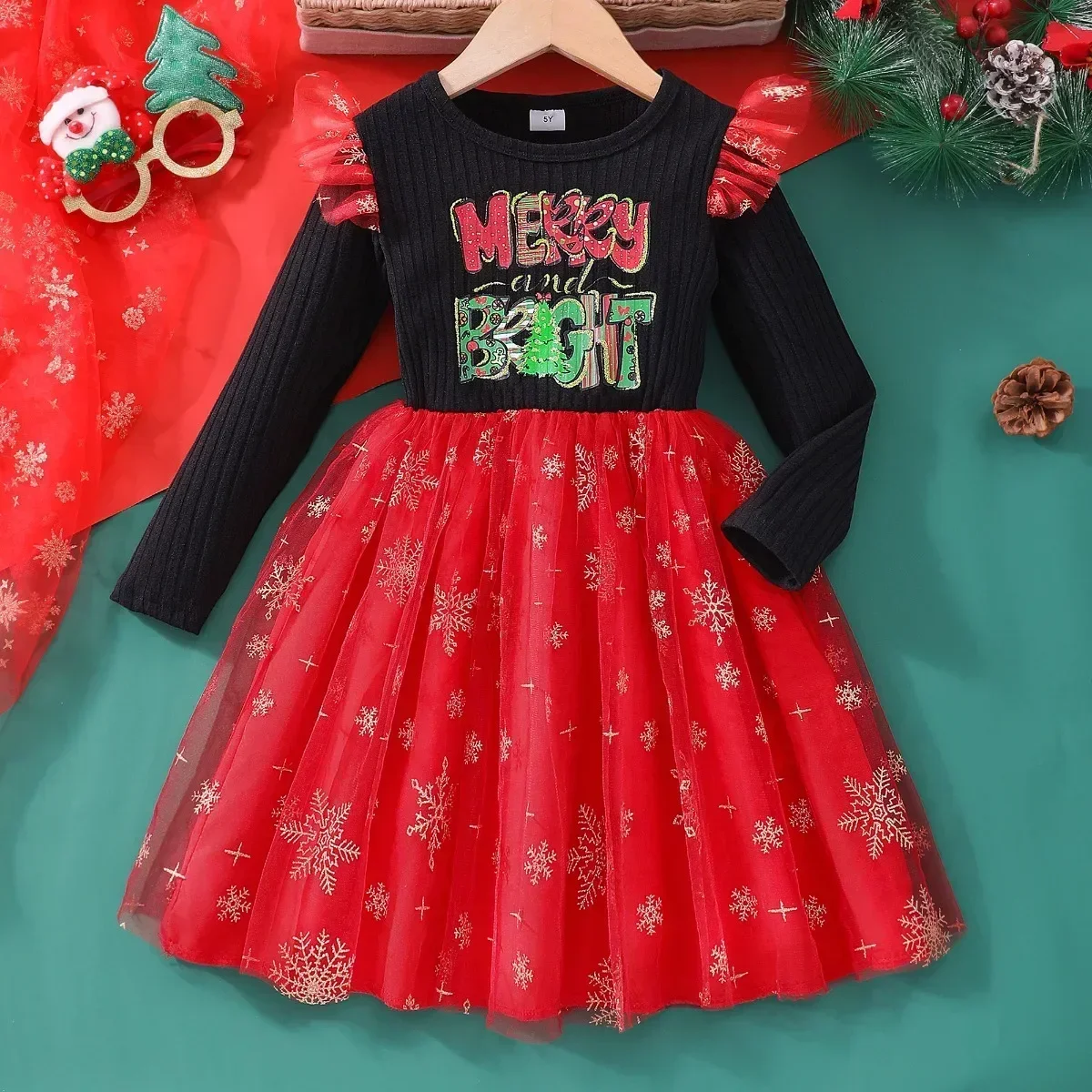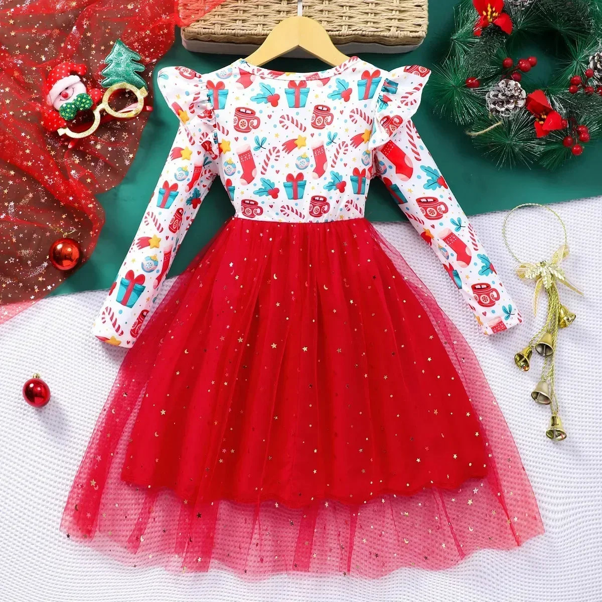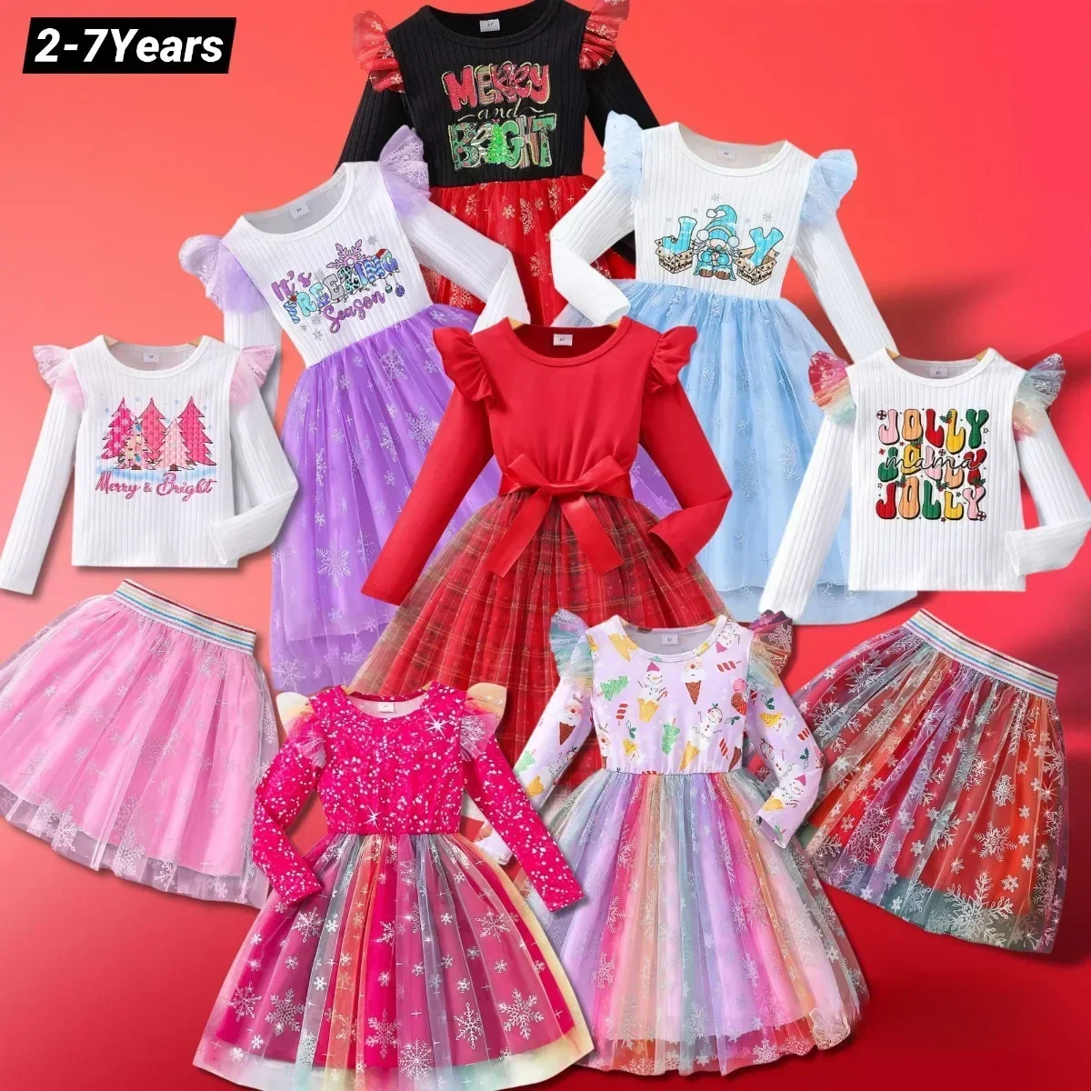 Comprar Vestido de Navidad para niñas, conjunto de ropa con patrón de dibujos animados para primavera y otoño, ropa informal dulce para niñas de 3 a 7 años