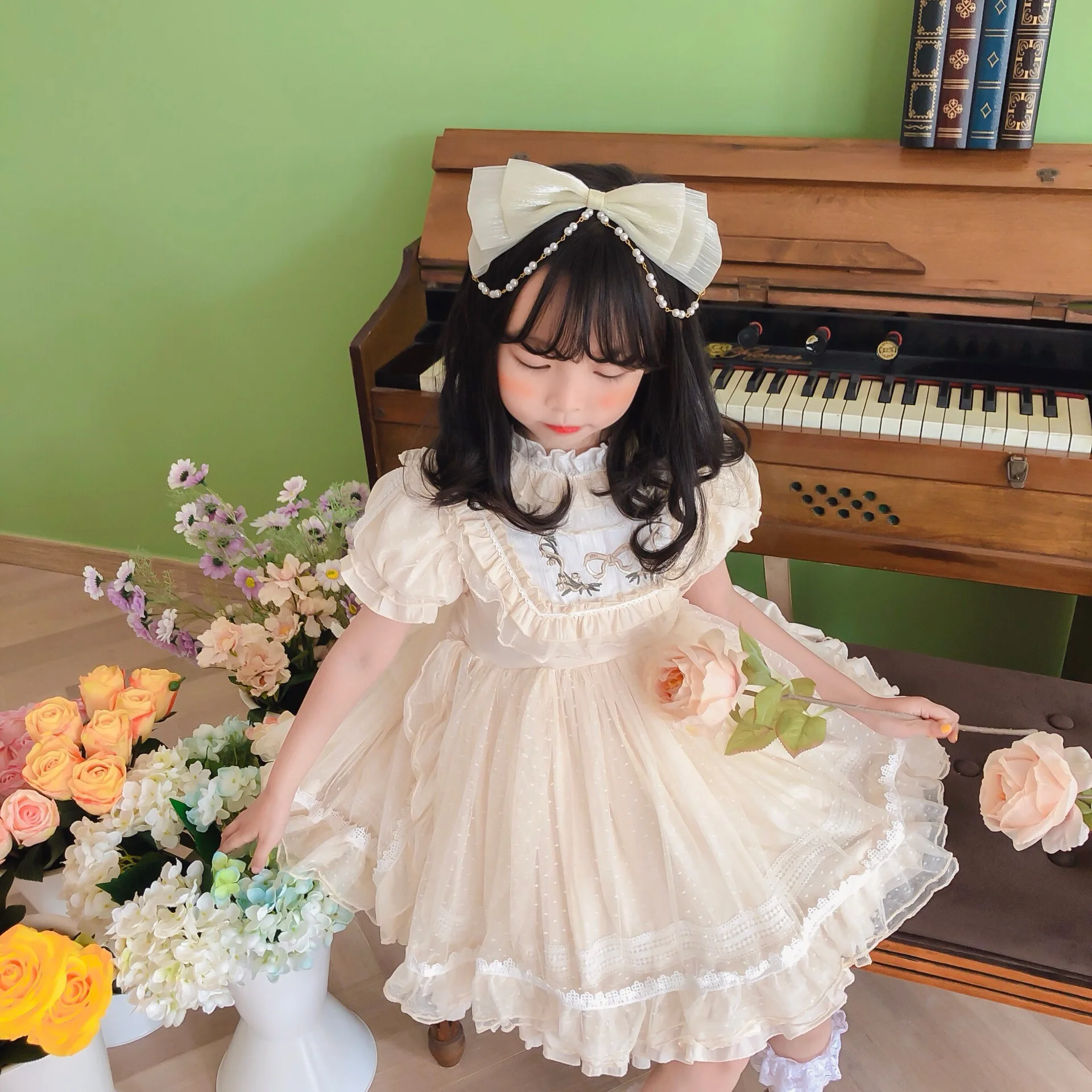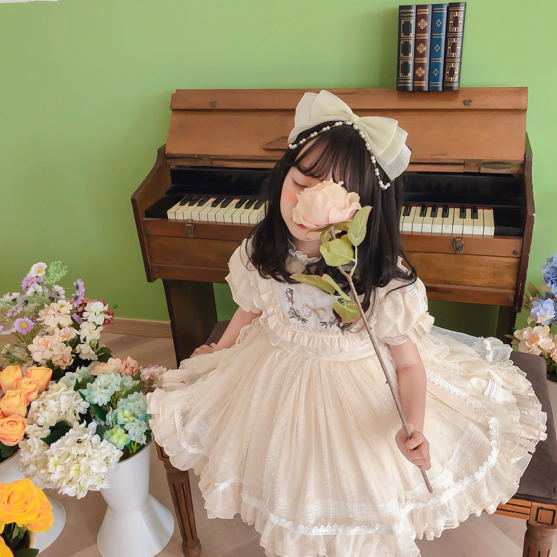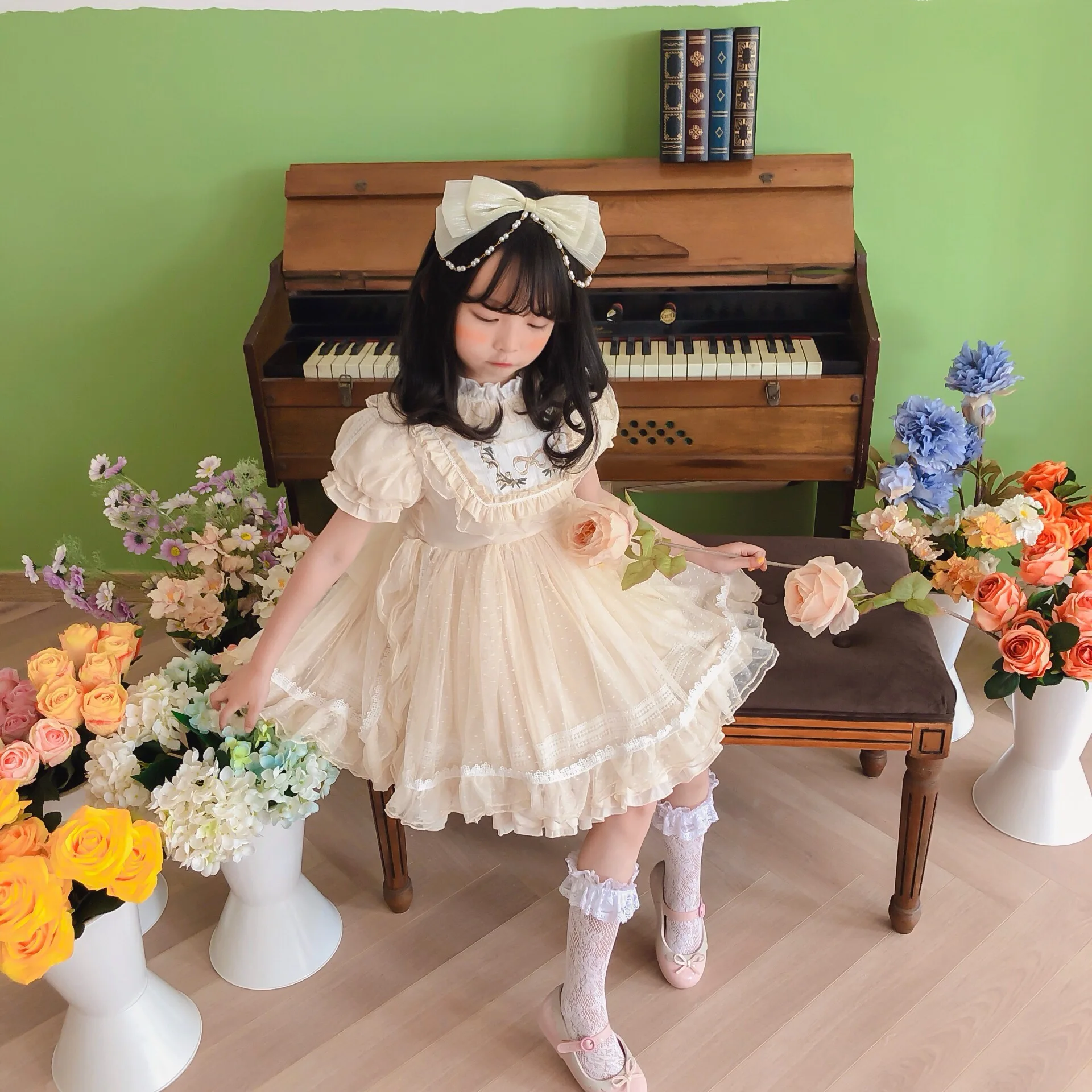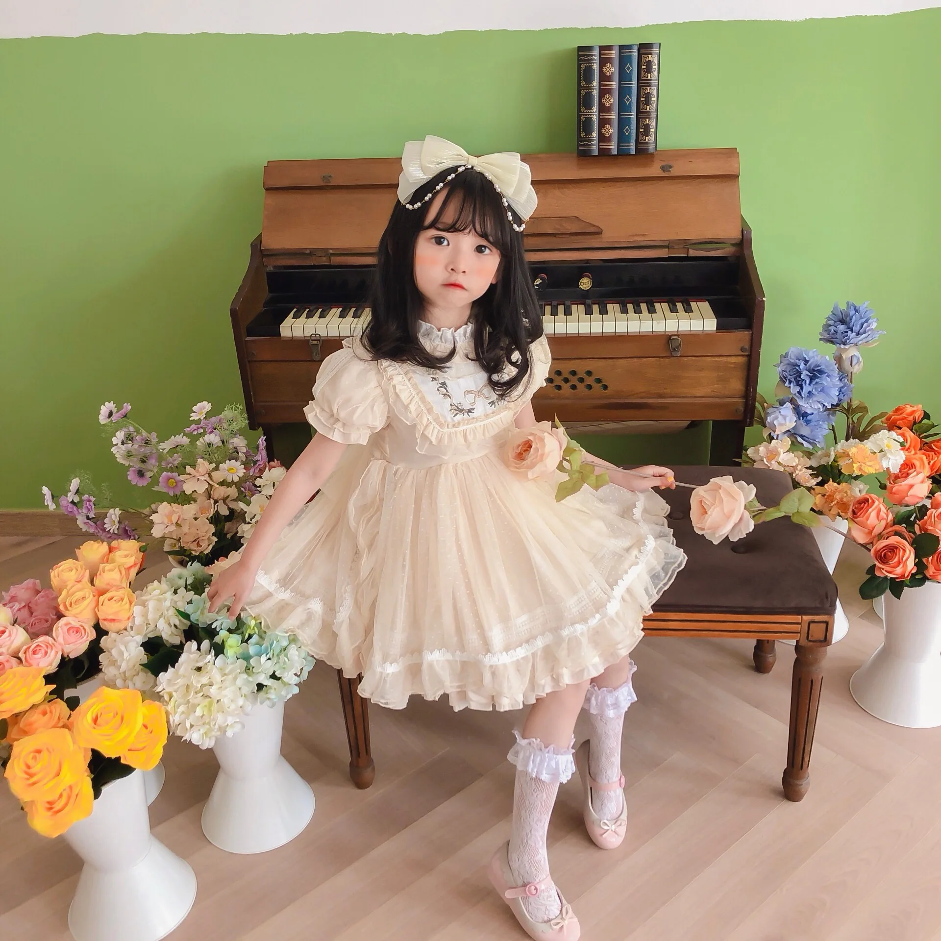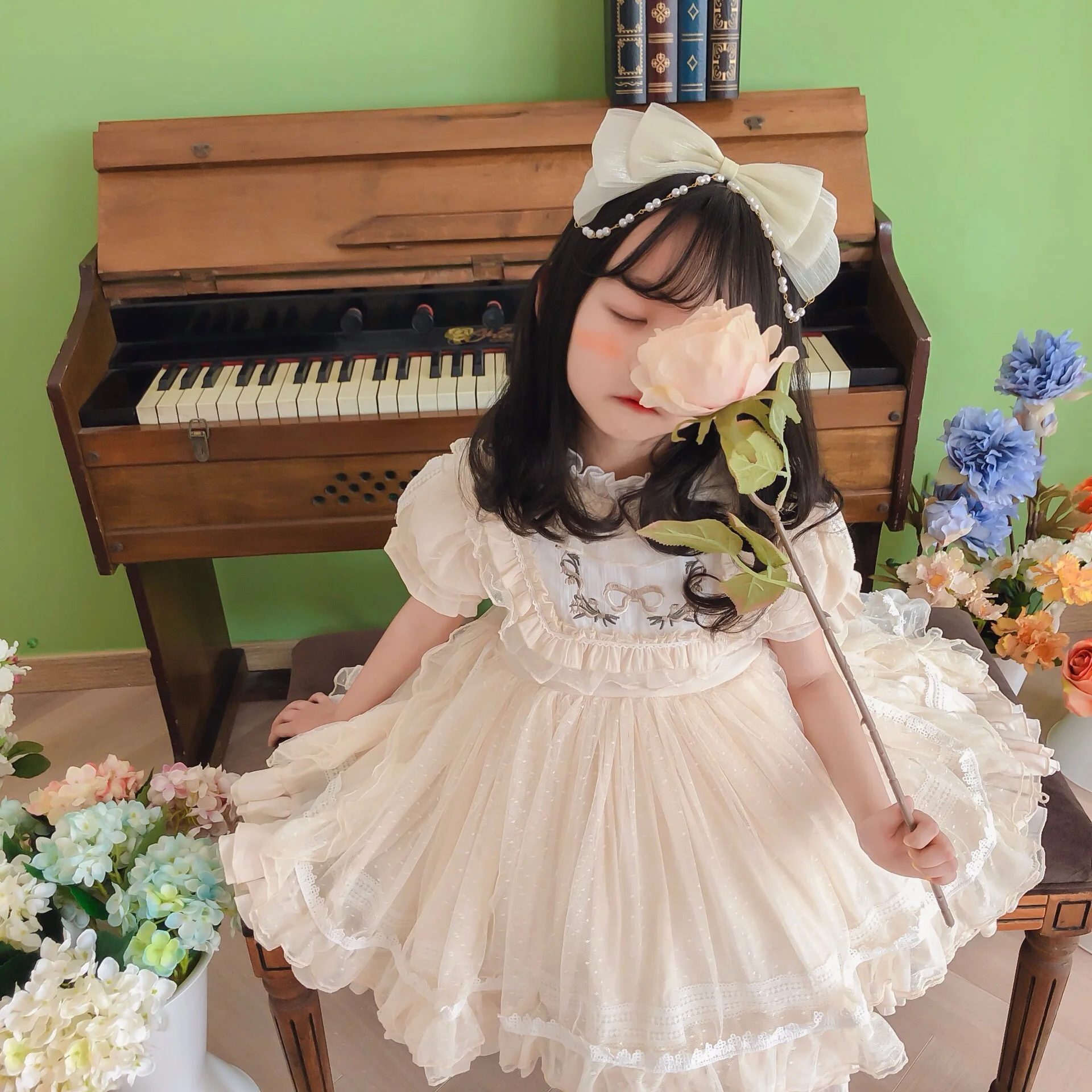 Vestido de niña Lolita, Vestidos de princesa español para bebé, Vestidos de fiesta de cumpleaños para niños, Vestidos de baile de Boutique, Vestidos bordados de encaje para niños