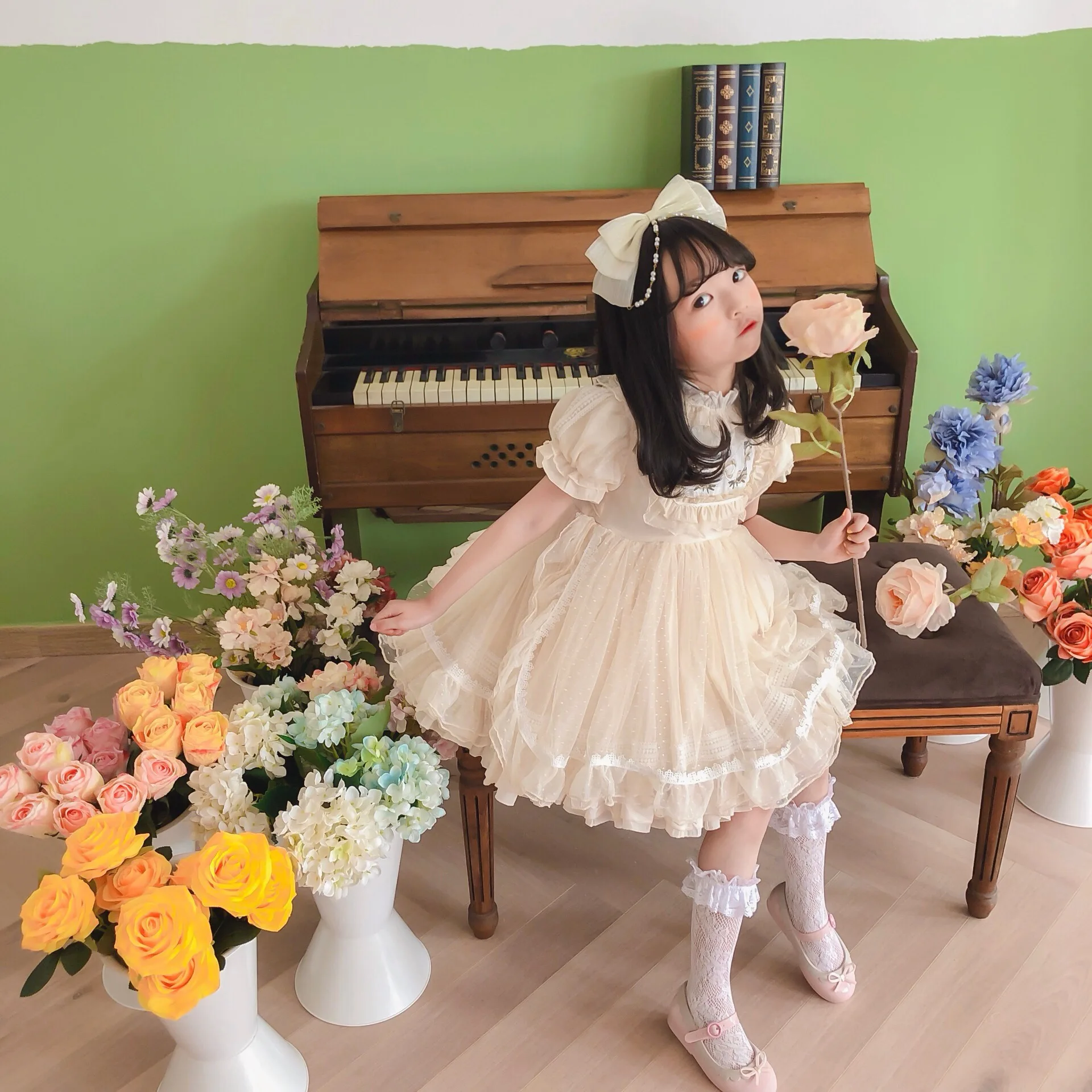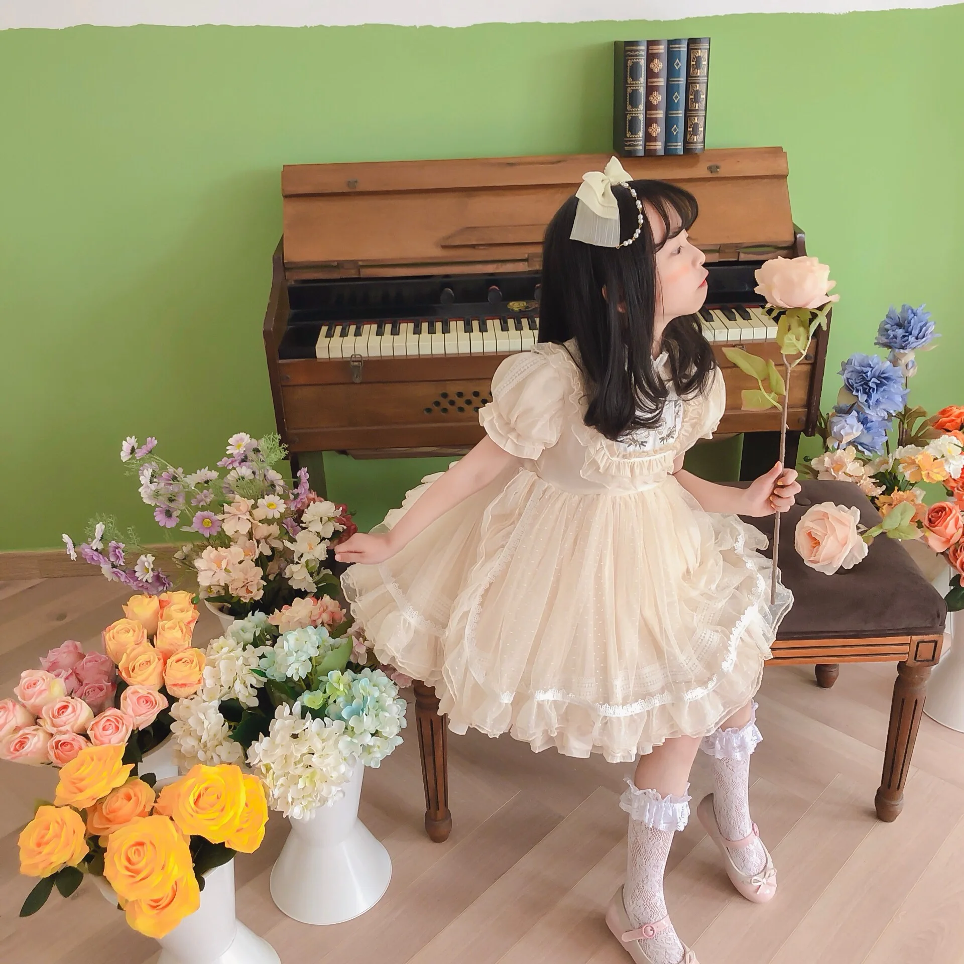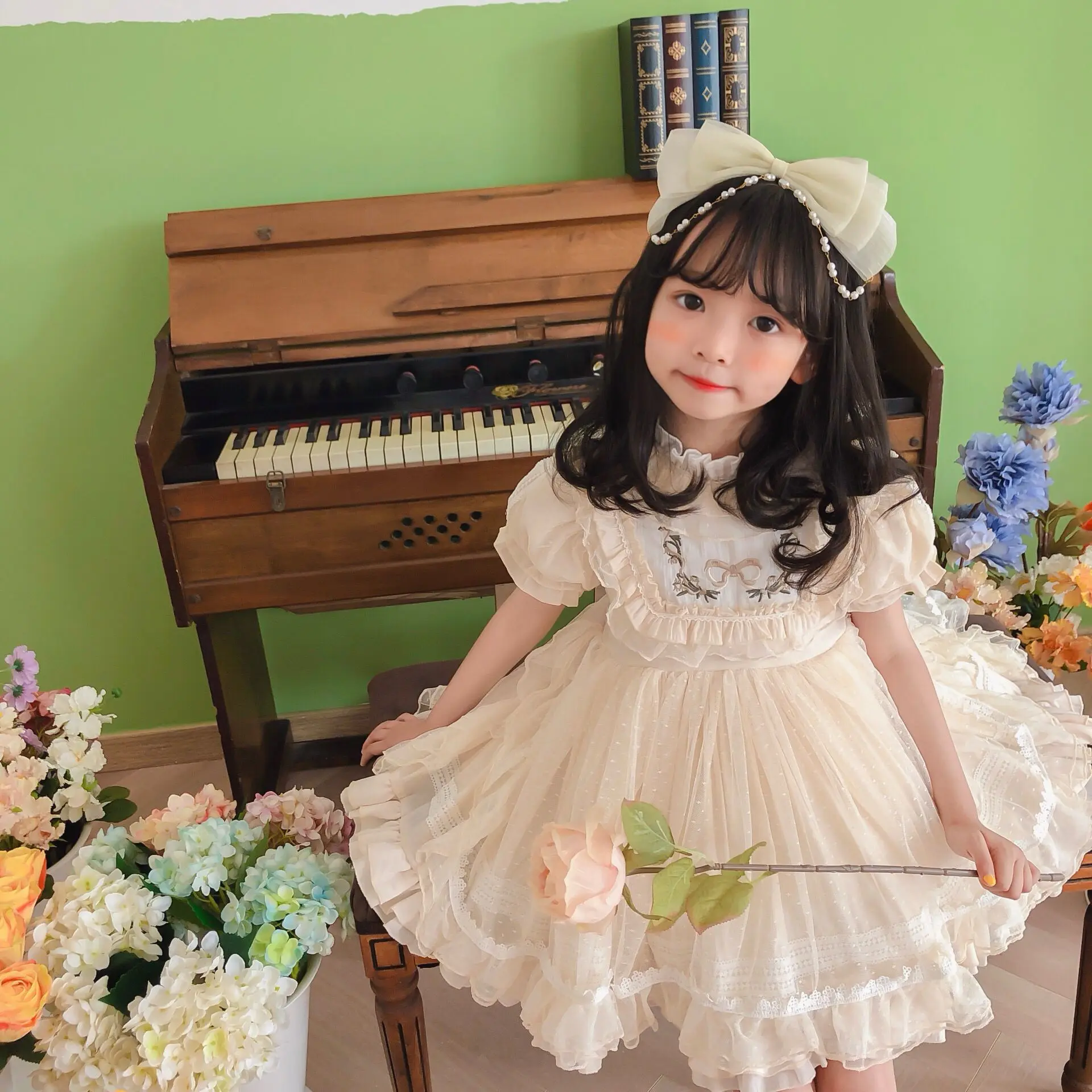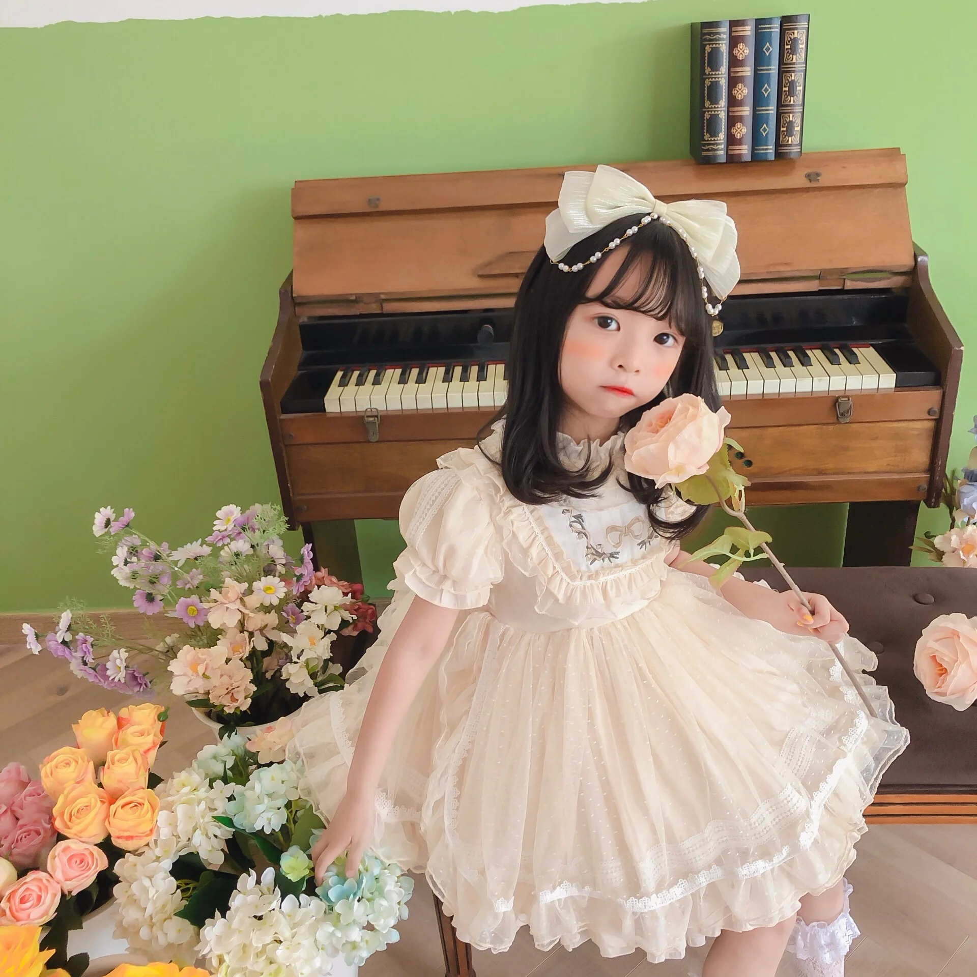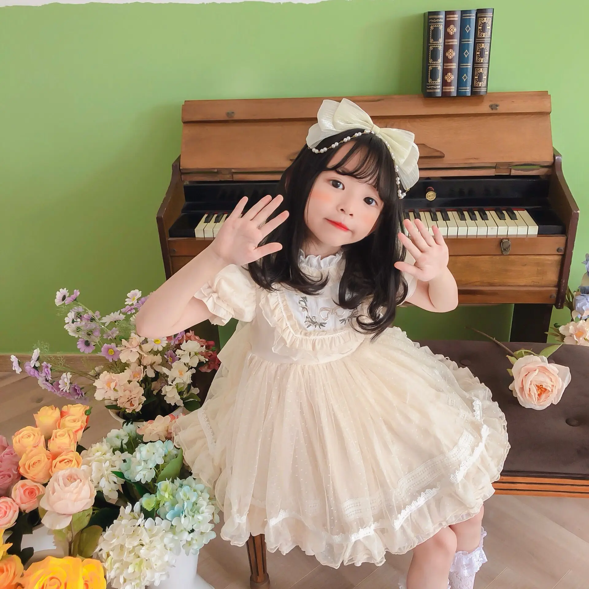 Vestido de niña Lolita, Vestidos de princesa español para bebé, Vestidos de fiesta de cumpleaños para niños, Vestidos de baile de Boutique, Vestidos bordados de encaje para niños