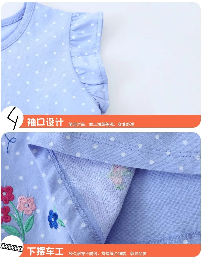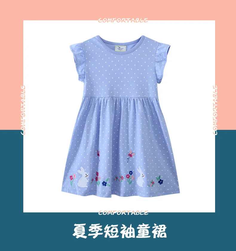 Vestido para niños de 2 a 7 años, vestidos de princesa informales bordados a la moda tejidos de algodón de manga corta para niñas, ropa de verano para niños