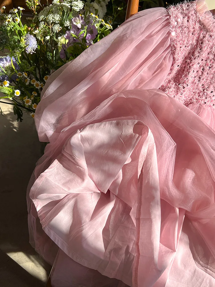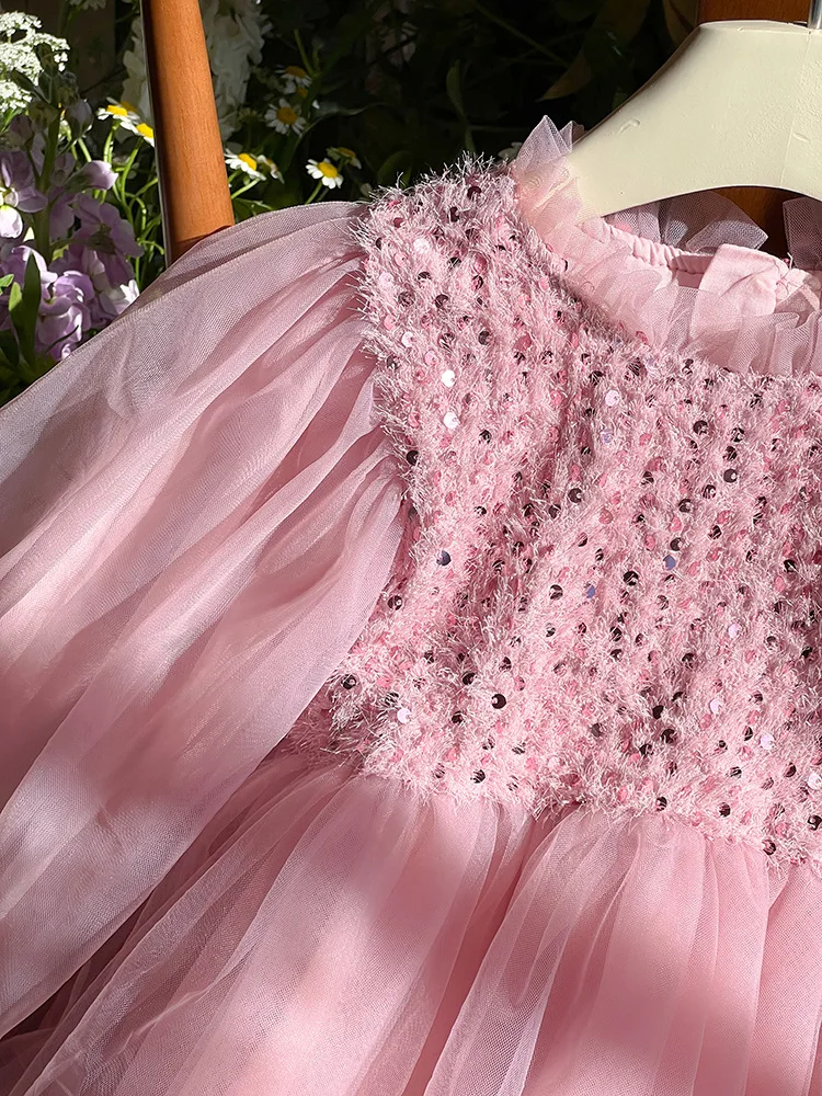 Comprar Vestido para niños Vestido de lentejuelas de manga larga para niñas medianas y pequeñas Vestido de gasa esponjoso con pastel