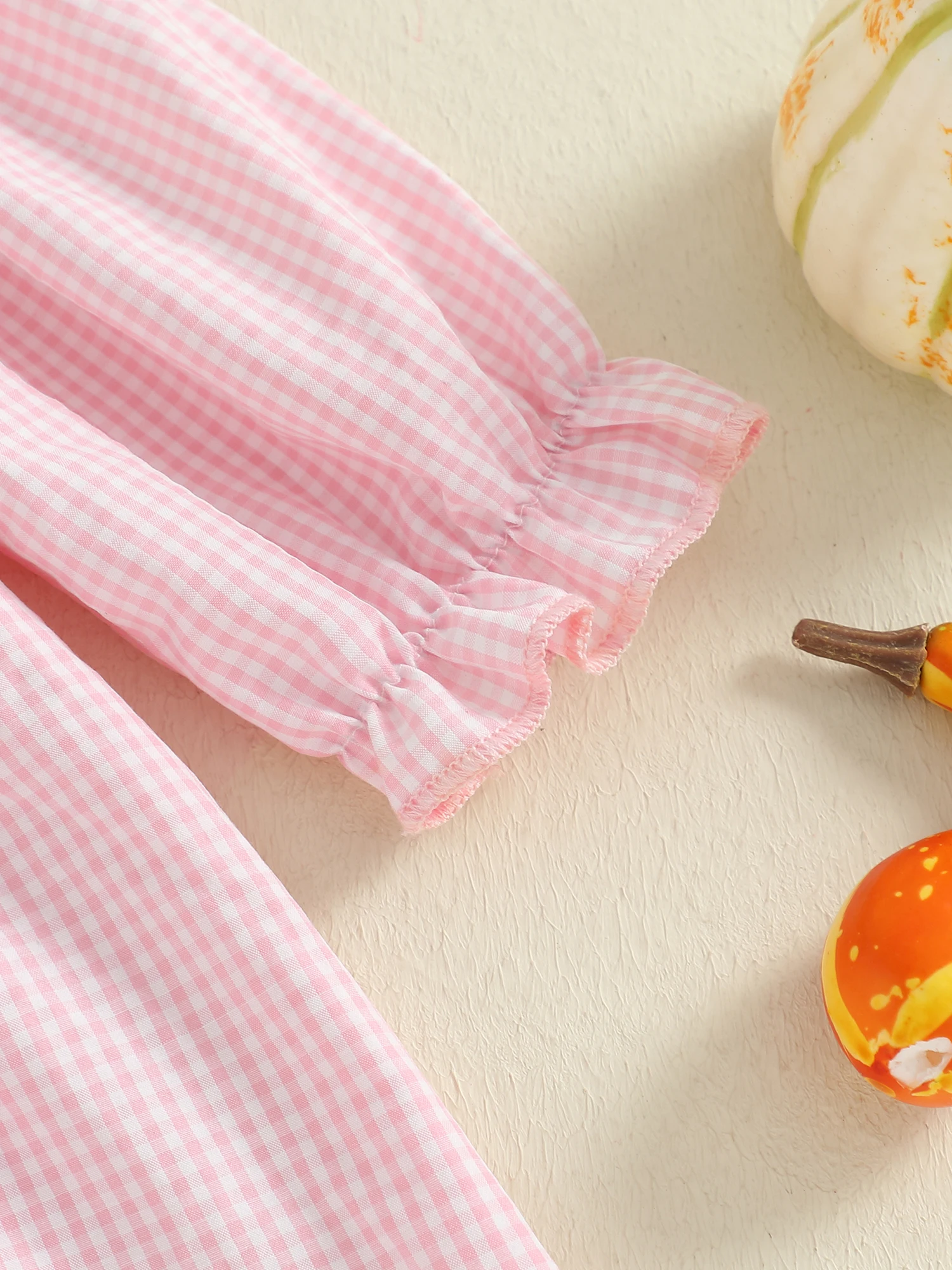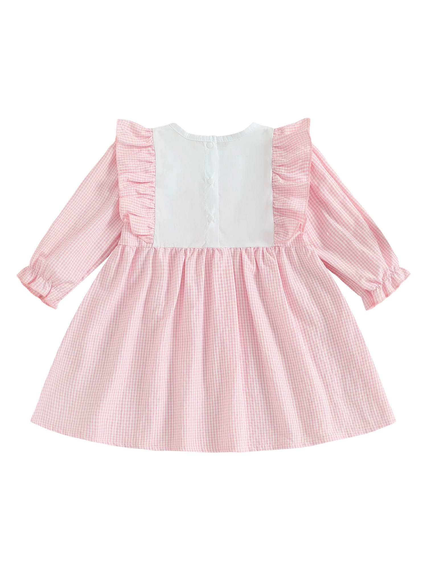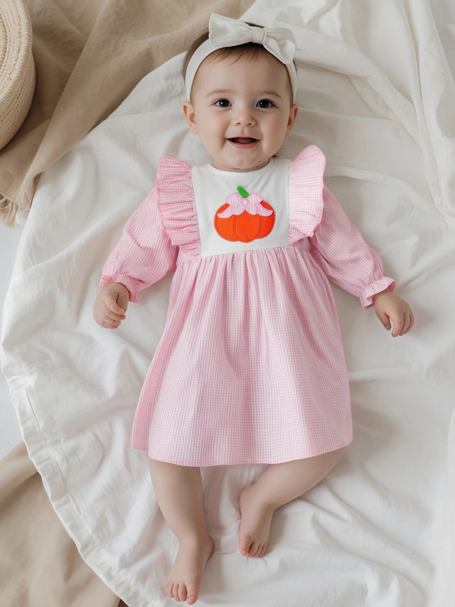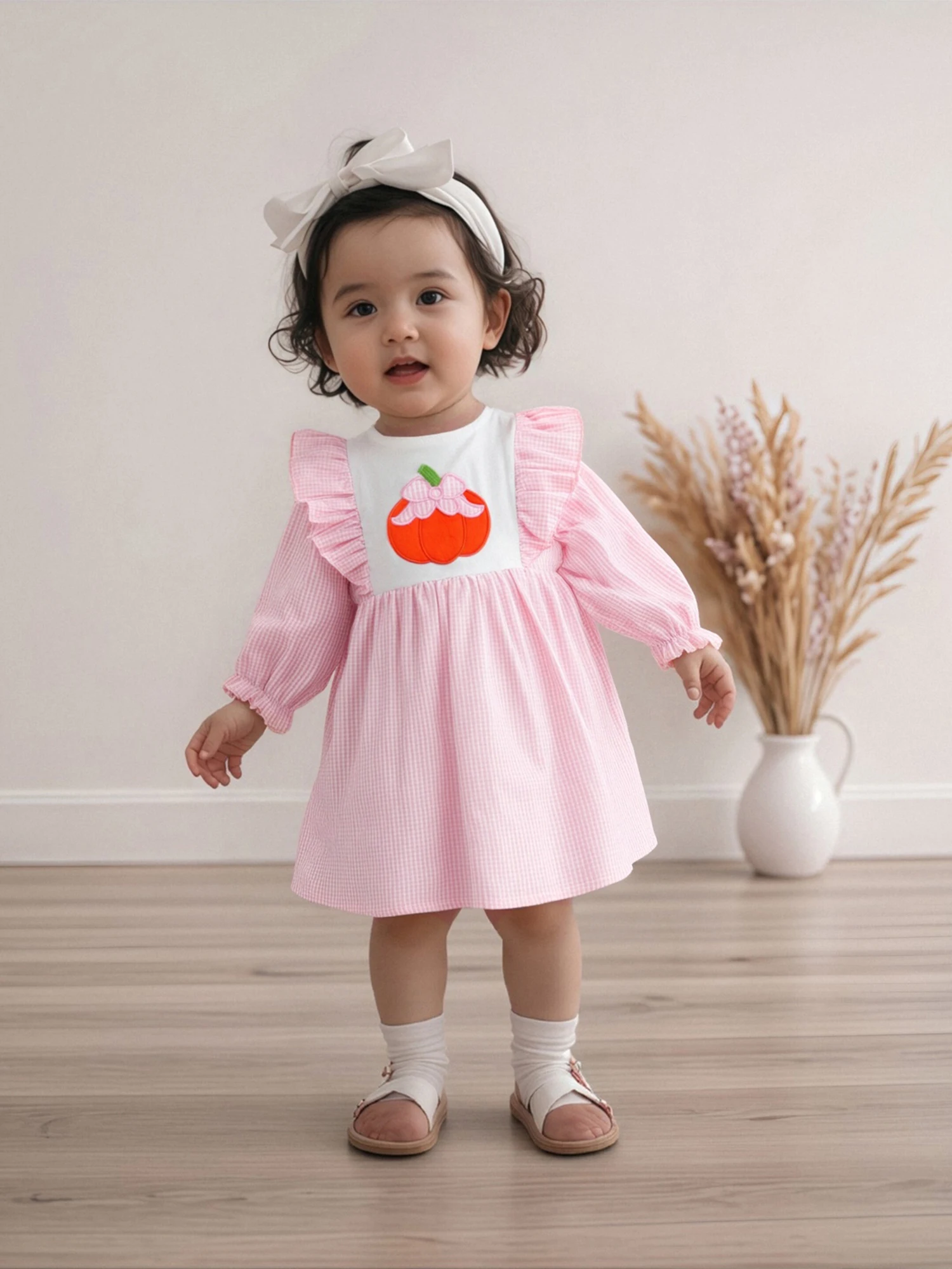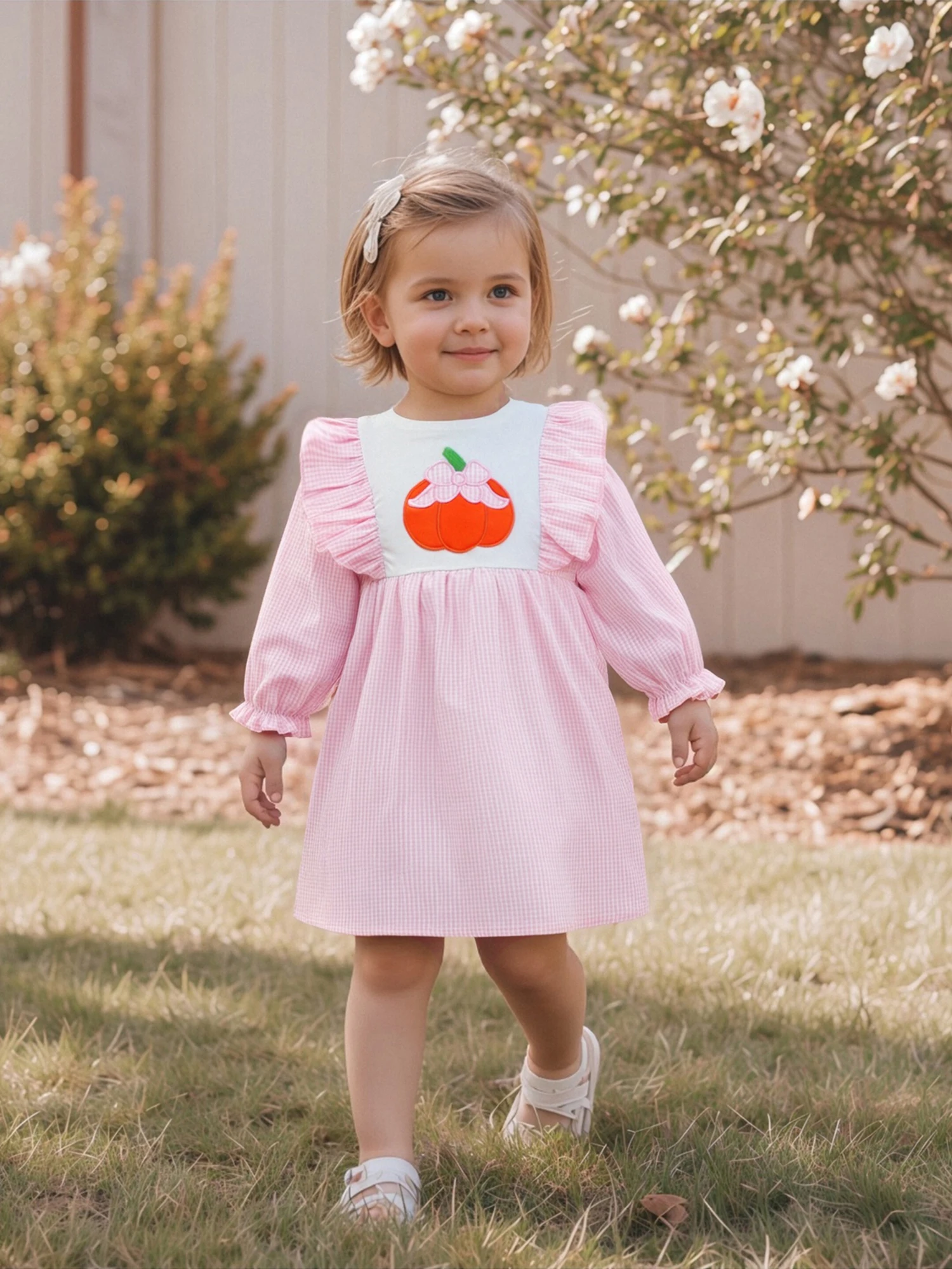 Vestido de otoño para niñas, manga larga, cuello redondo, lazo, bordado de calabaza, traje de Halloween para niños pequeños