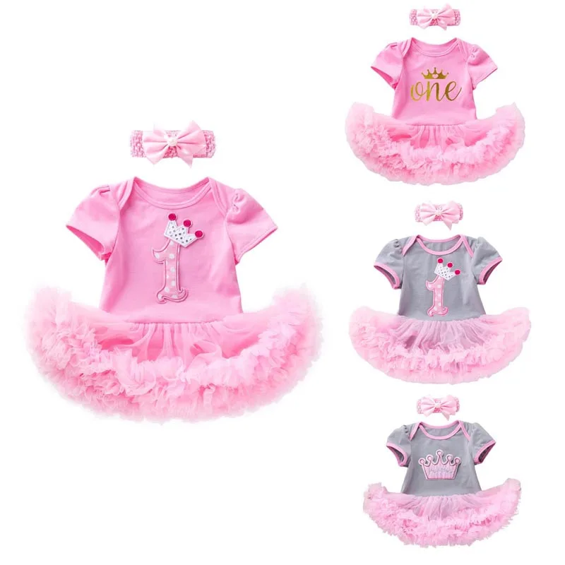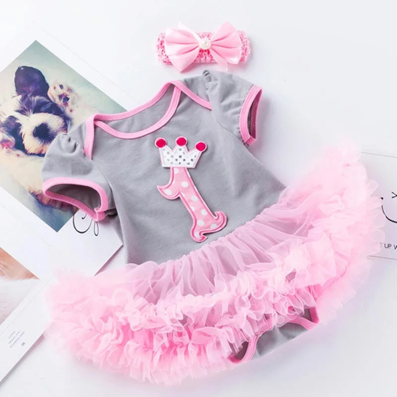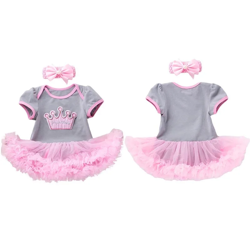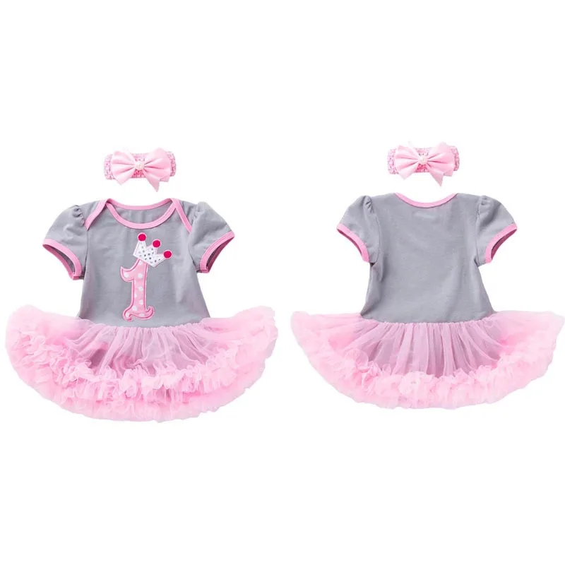 Vestido de princesa de 1er cumpleaños para niñas, conjunto de mameluco de retazos de tul de manga corta con diadema con lazo, conjunto de verano de 2 uds.