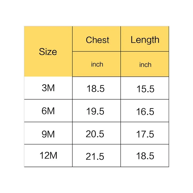 6M Longitud: 38 Busto: 49 Manga: 9 Edad recomendada: 3-6 meses