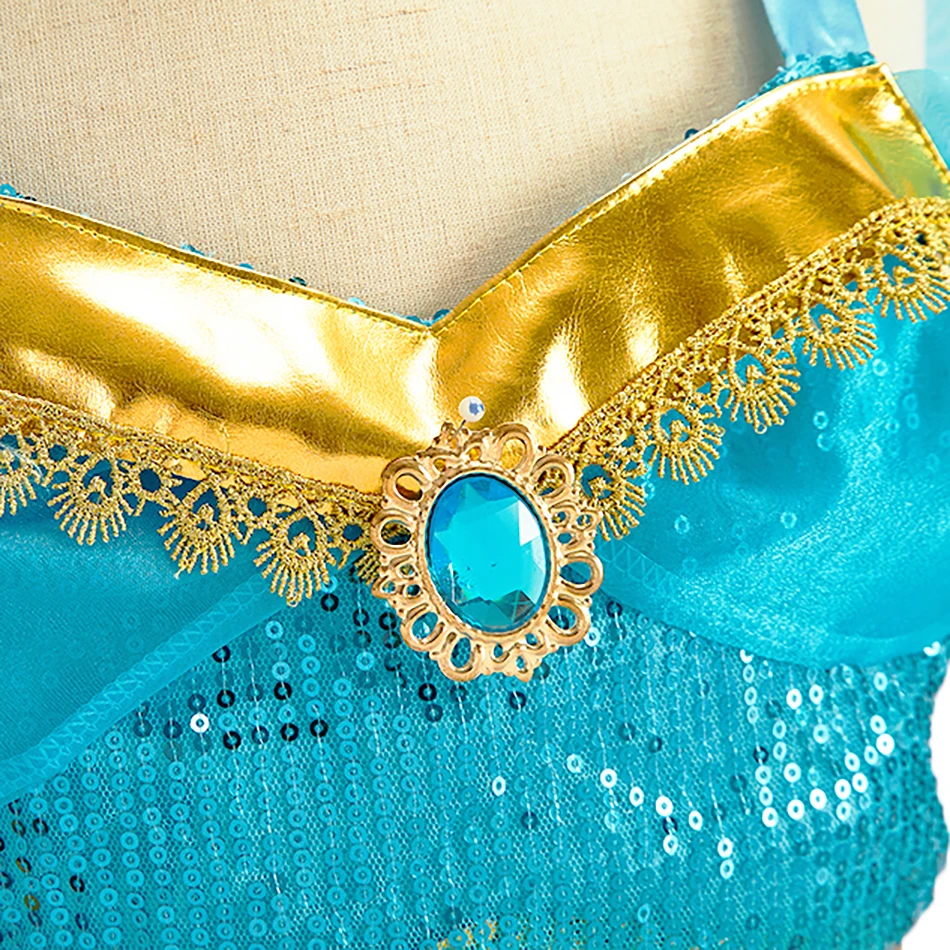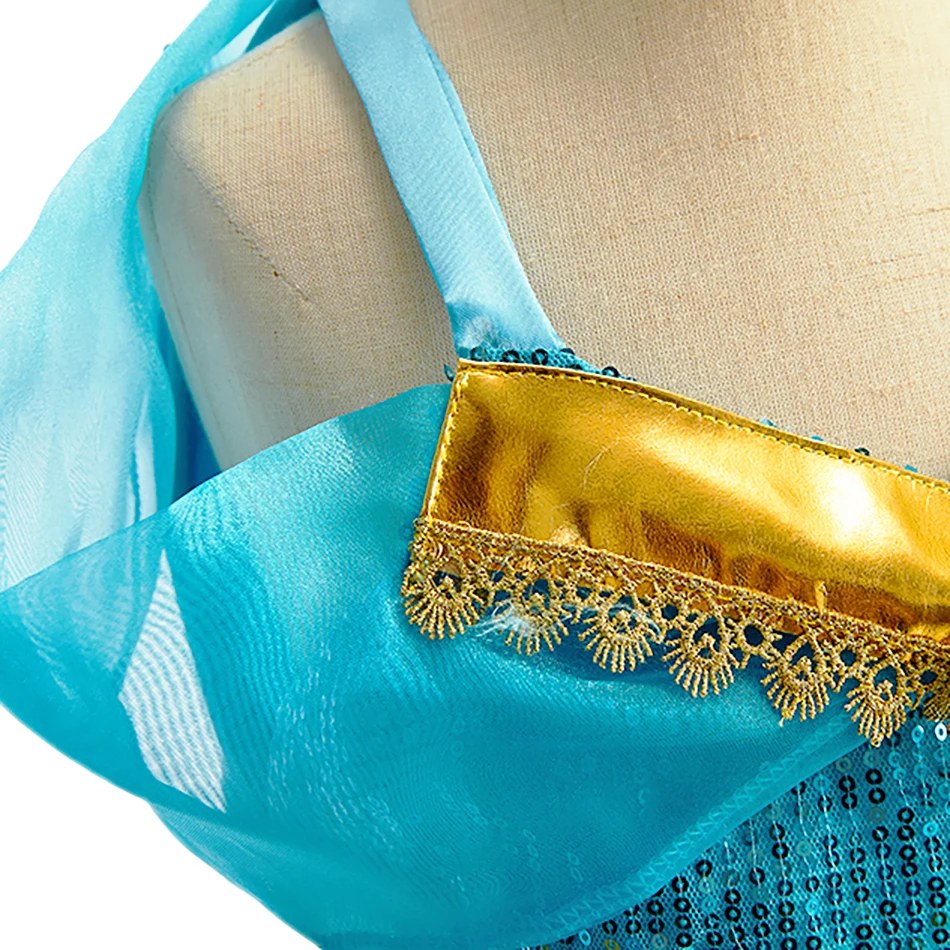 Nombre: Vestido de princesa árabe para niños, disfraz de jazmín de Halloween para niñas, disfraz de fiesta de Carnaval para niños, traje de desfile de lentejuelas para niñas