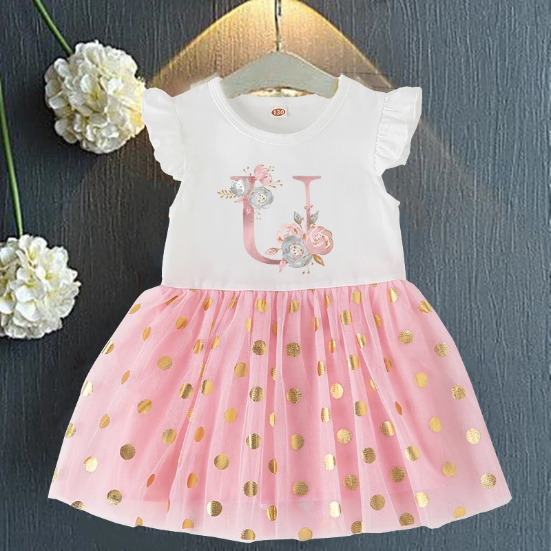Comprar Vestido de princesa con estampado de letras para niñas, ropa de fiesta de manga corta, lentejuelas, rosa, 26, Verano