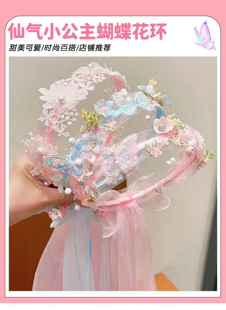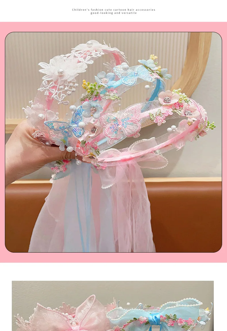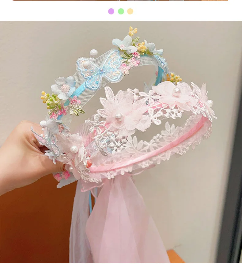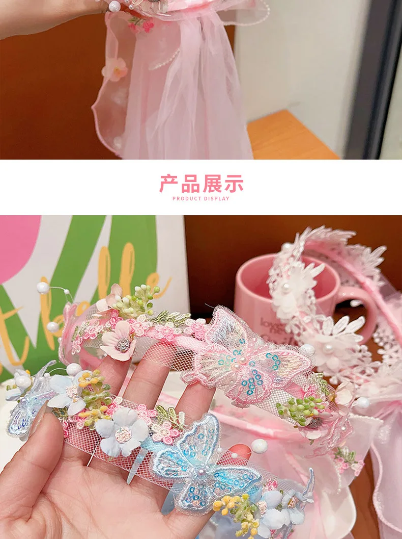 Vestido de princesa para niños, corona de mariposa, broche para el pelo, diademas para niñas, lazo de encaje, accesorios para el cabello de cumpleaños para bebés