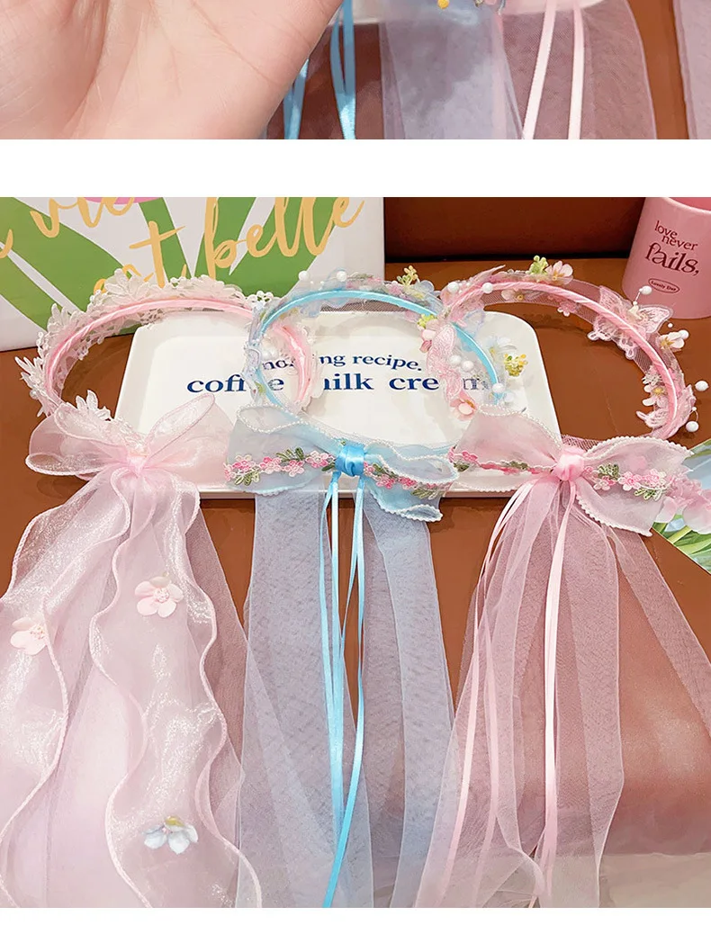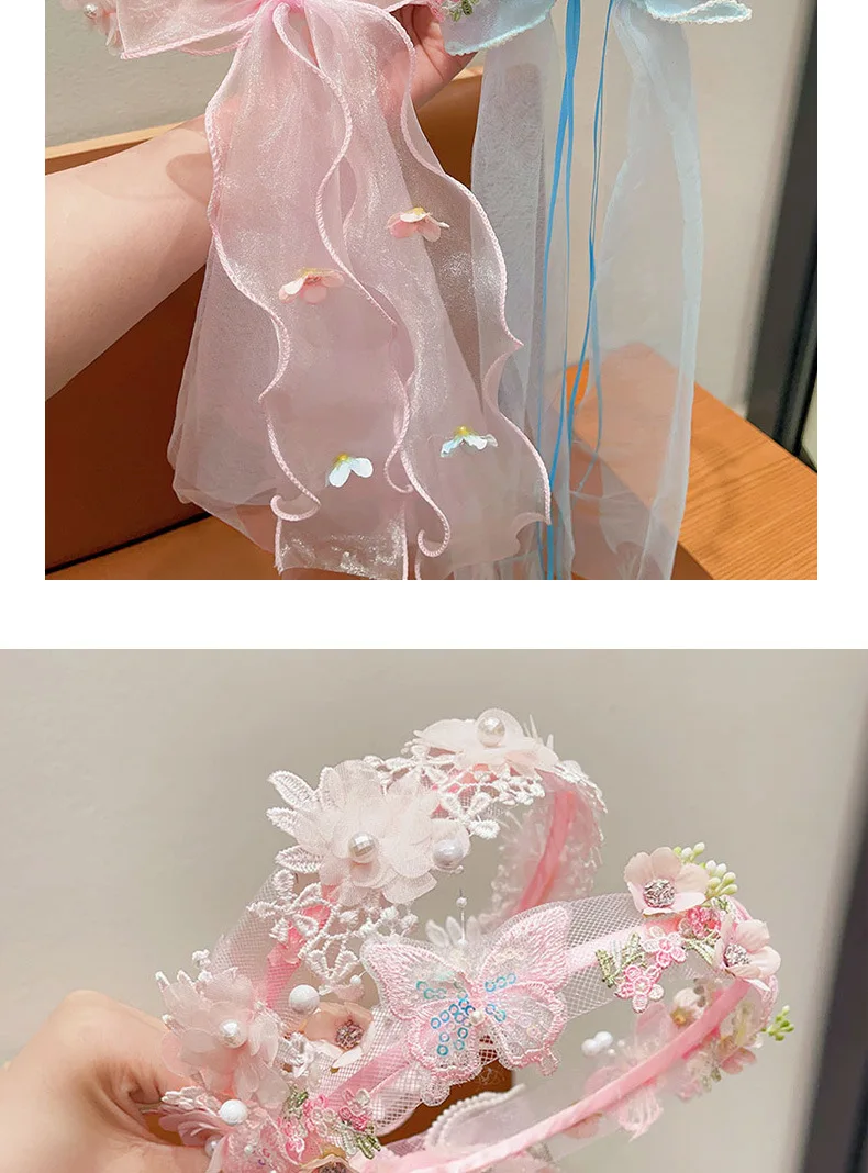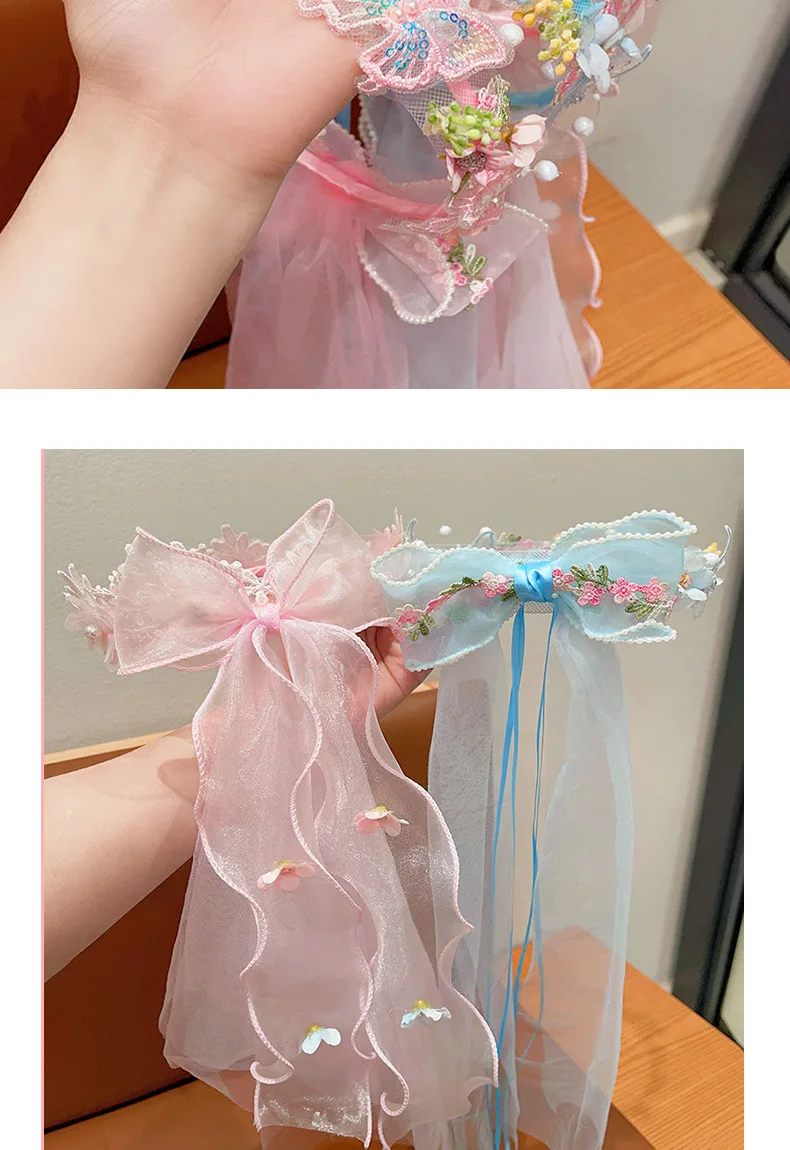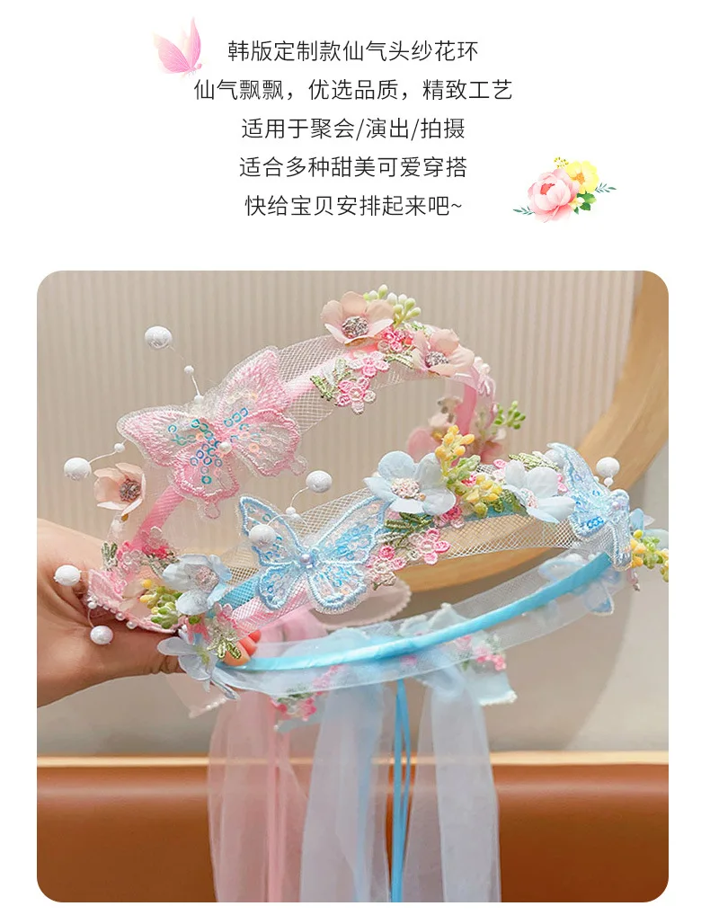 Vestido de princesa para niños, corona de mariposa, broche para el pelo, diademas para niñas, lazo de encaje, accesorios para el cabello de cumpleaños para bebés