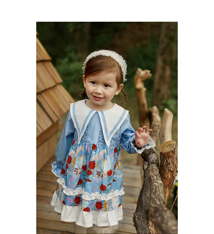 Comprar Vestido de princesa Retro Lolita para niña, ropa de otoño, falda de línea a con solapa grande, novedad de 2022