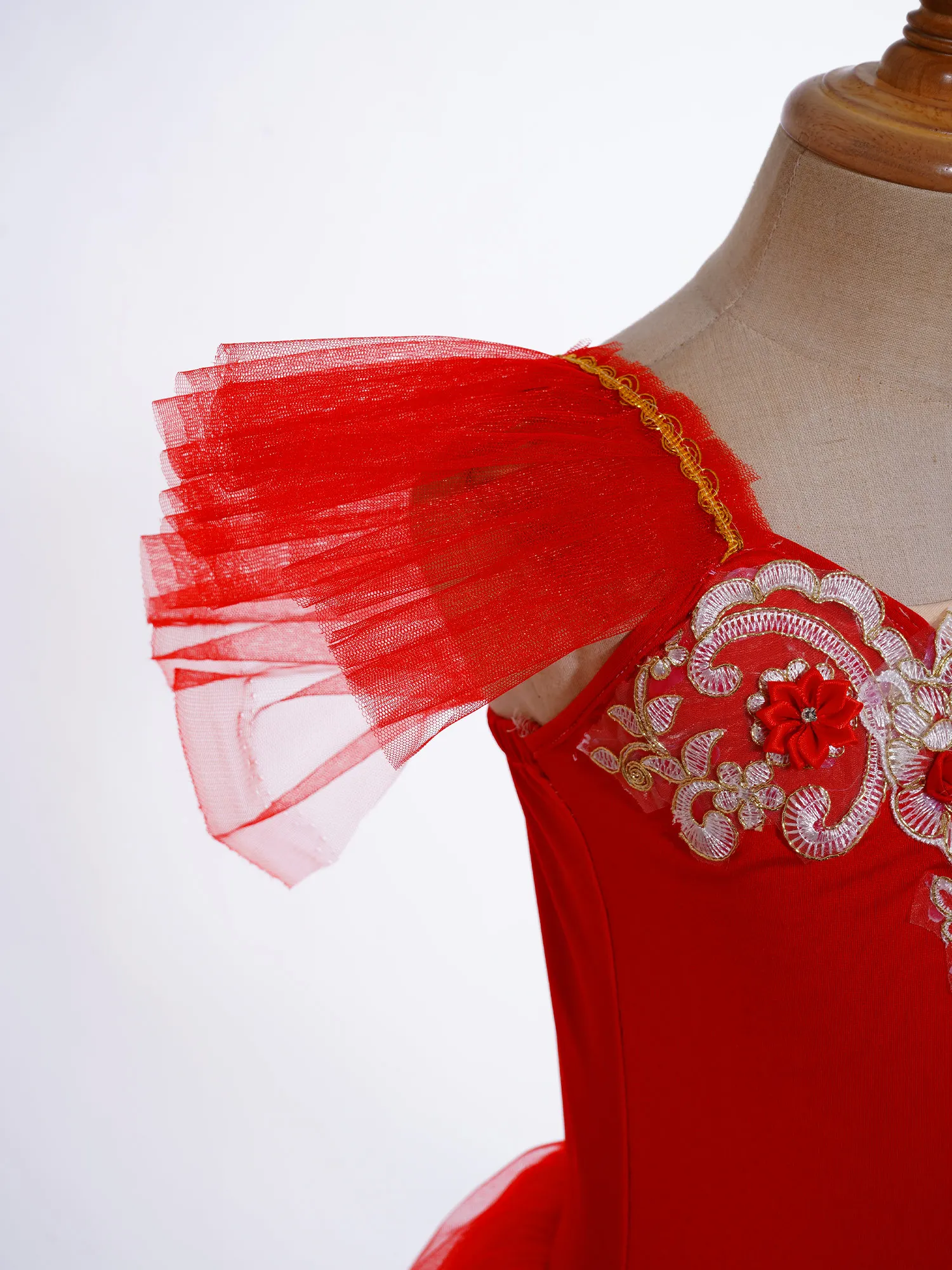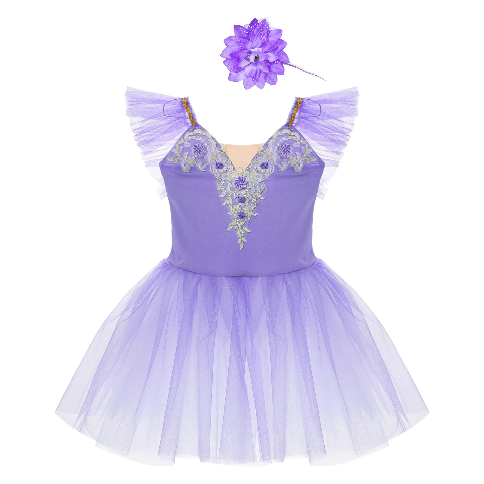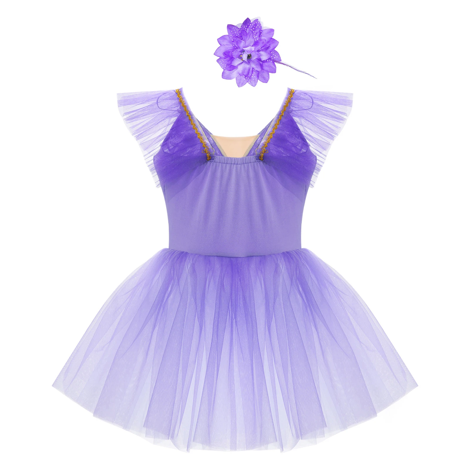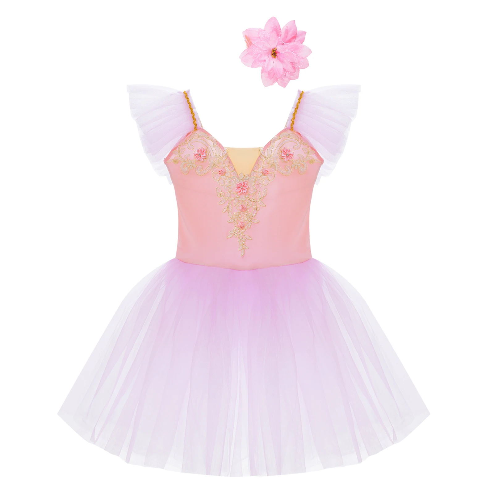 Vestido de baile exterior de malla de tutú de tres capas, calzoncillos en el interior, a juego con un exquisito tocado de flores.