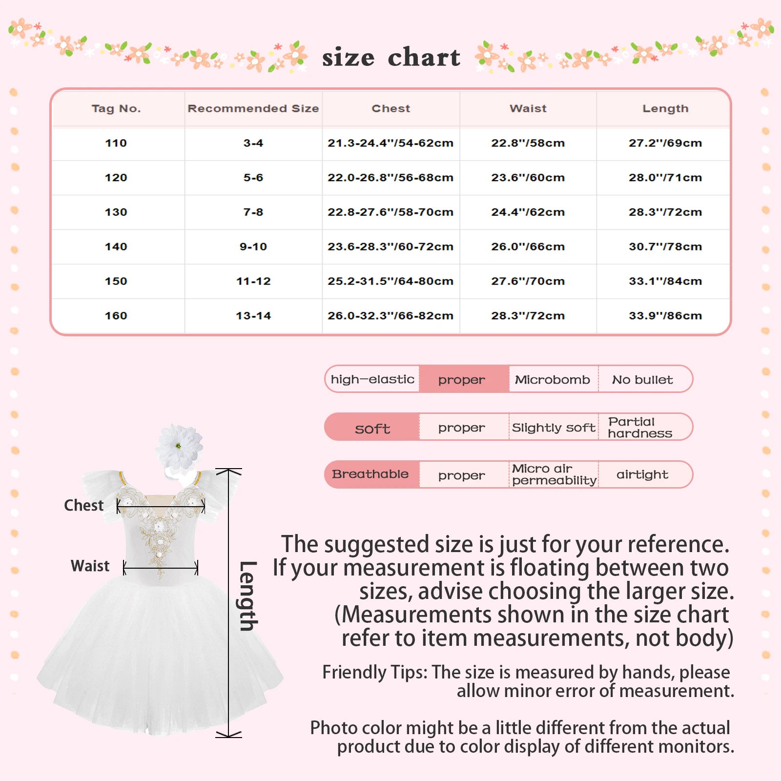 La tabla de tallas significa rango de edad para niñas, pero son solo para orientación general, lavar a mano con agua fría.