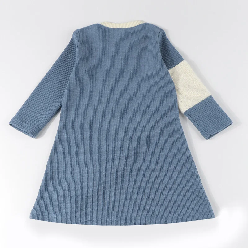 Vestido para niñas, tejido tipo gofre, manga larga, parche de piel en contraste, vestidos para niños, ropa de invierno con cordón para niñas, conjunto de ropa familiar