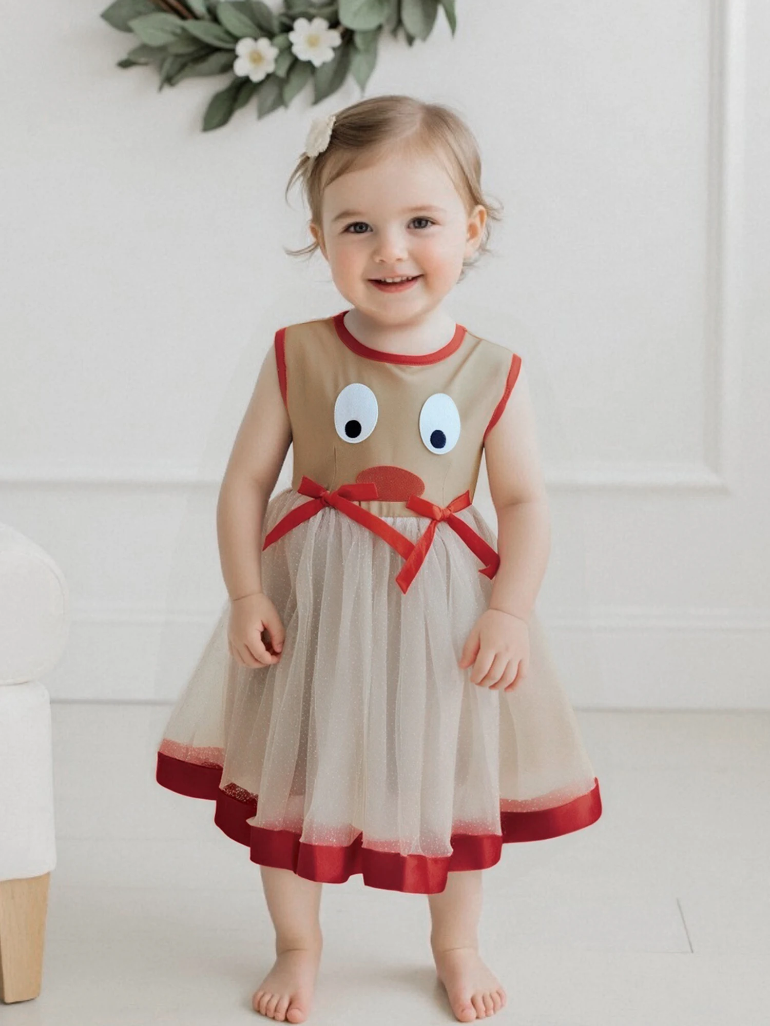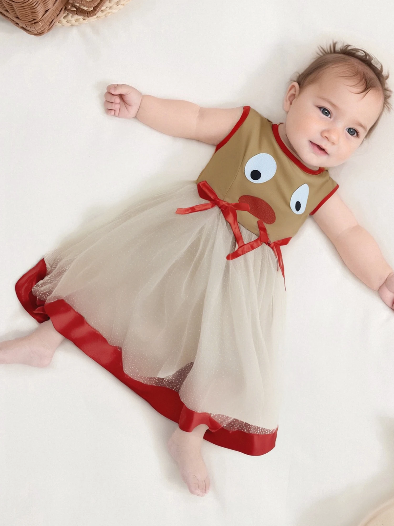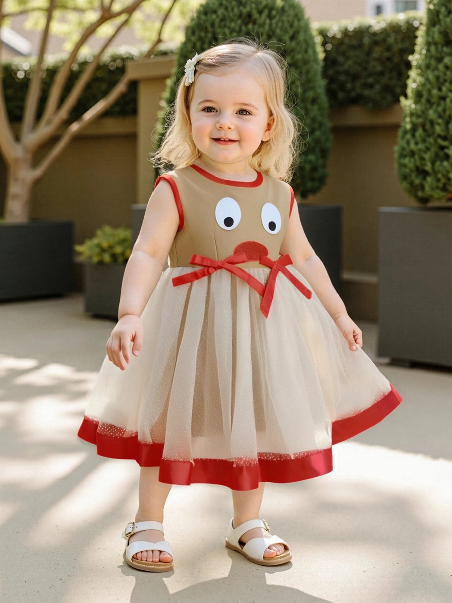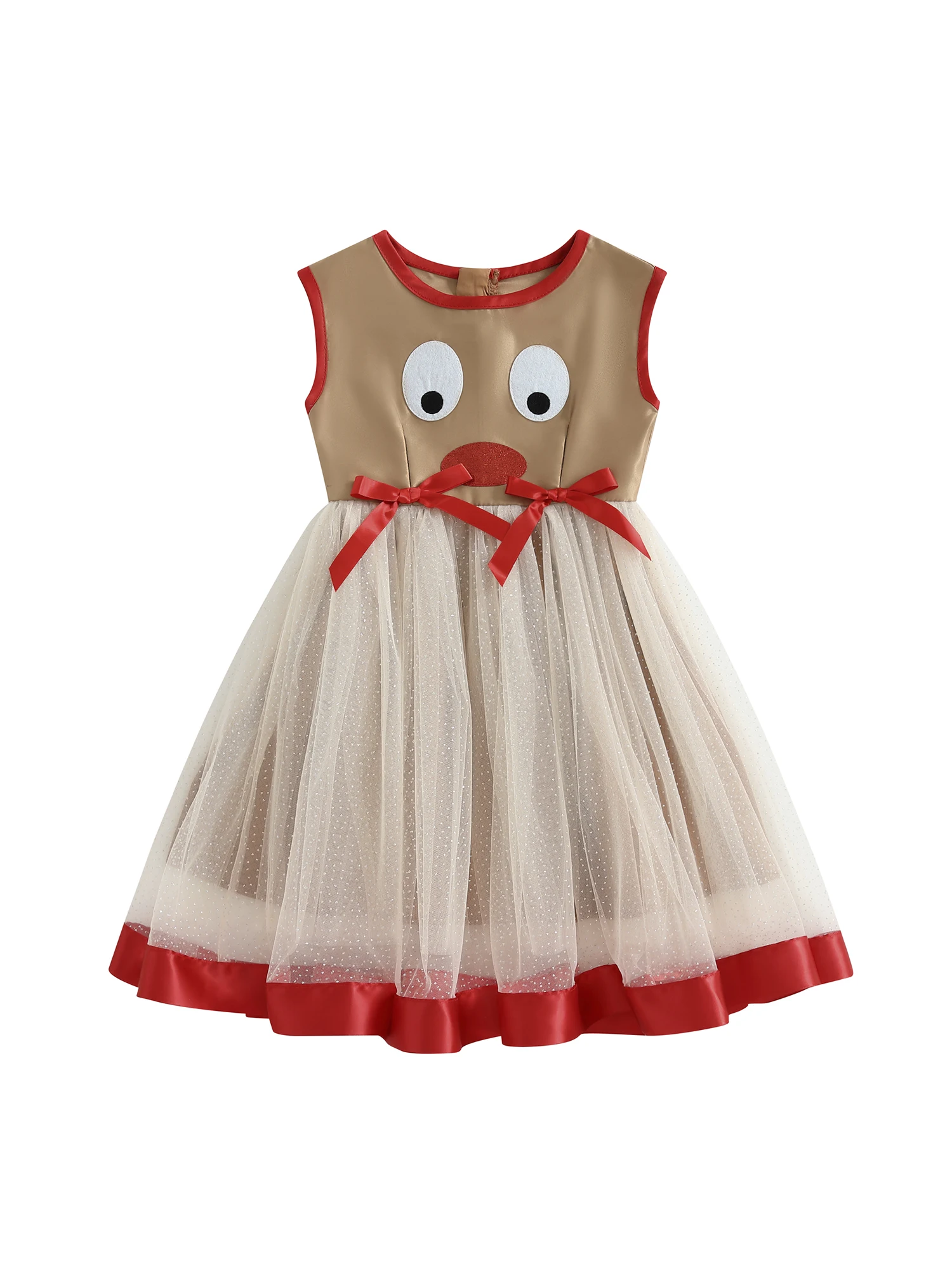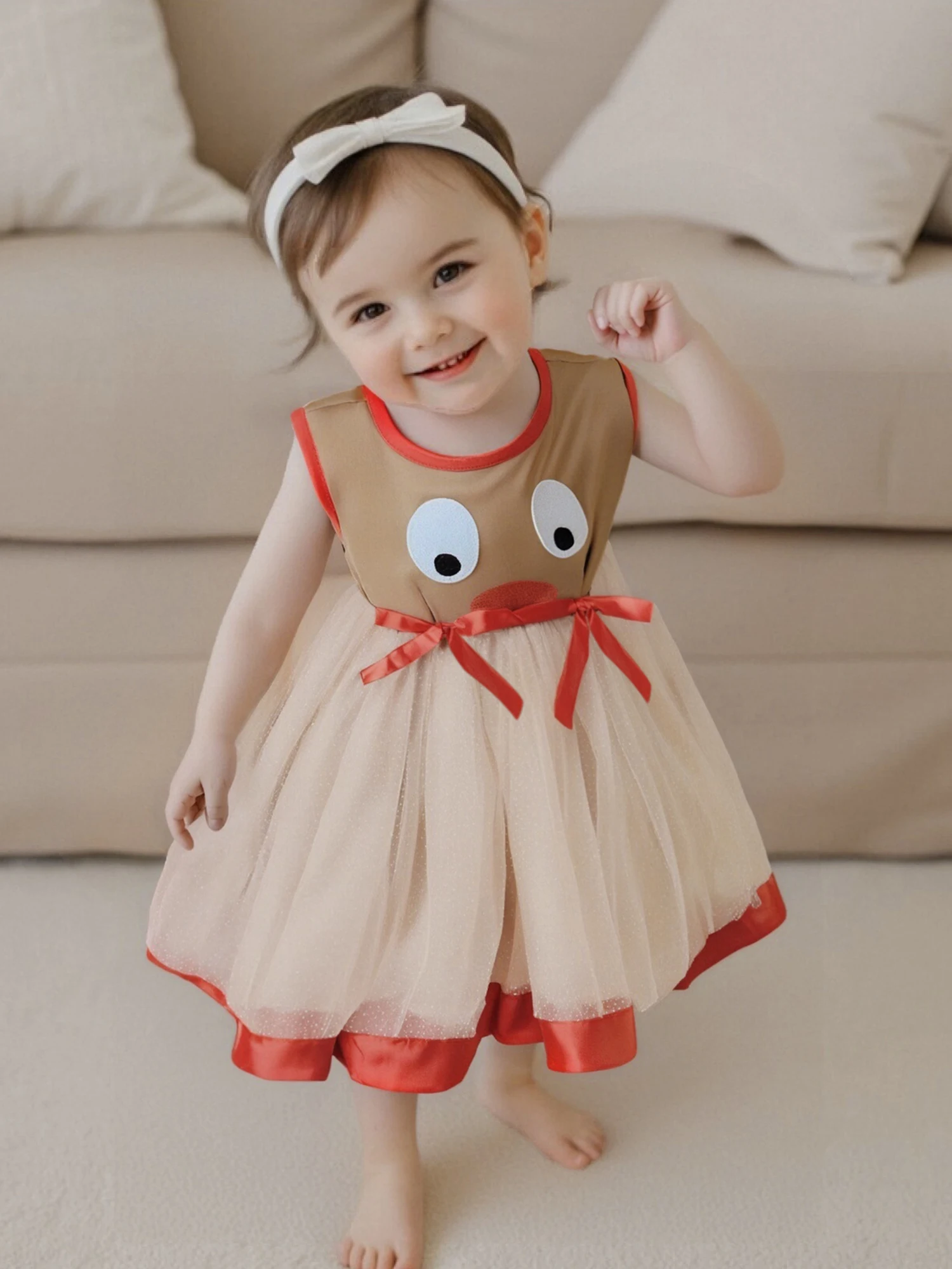 Comprar Vestido de retazos de tul sin mangas con cuello redondo y estampado de pavo para niña pequeña de Acción de Gracias