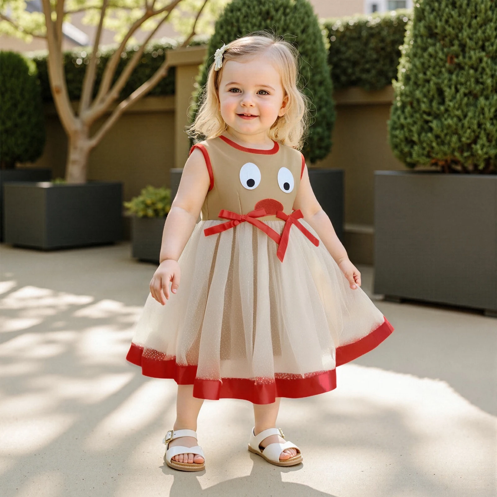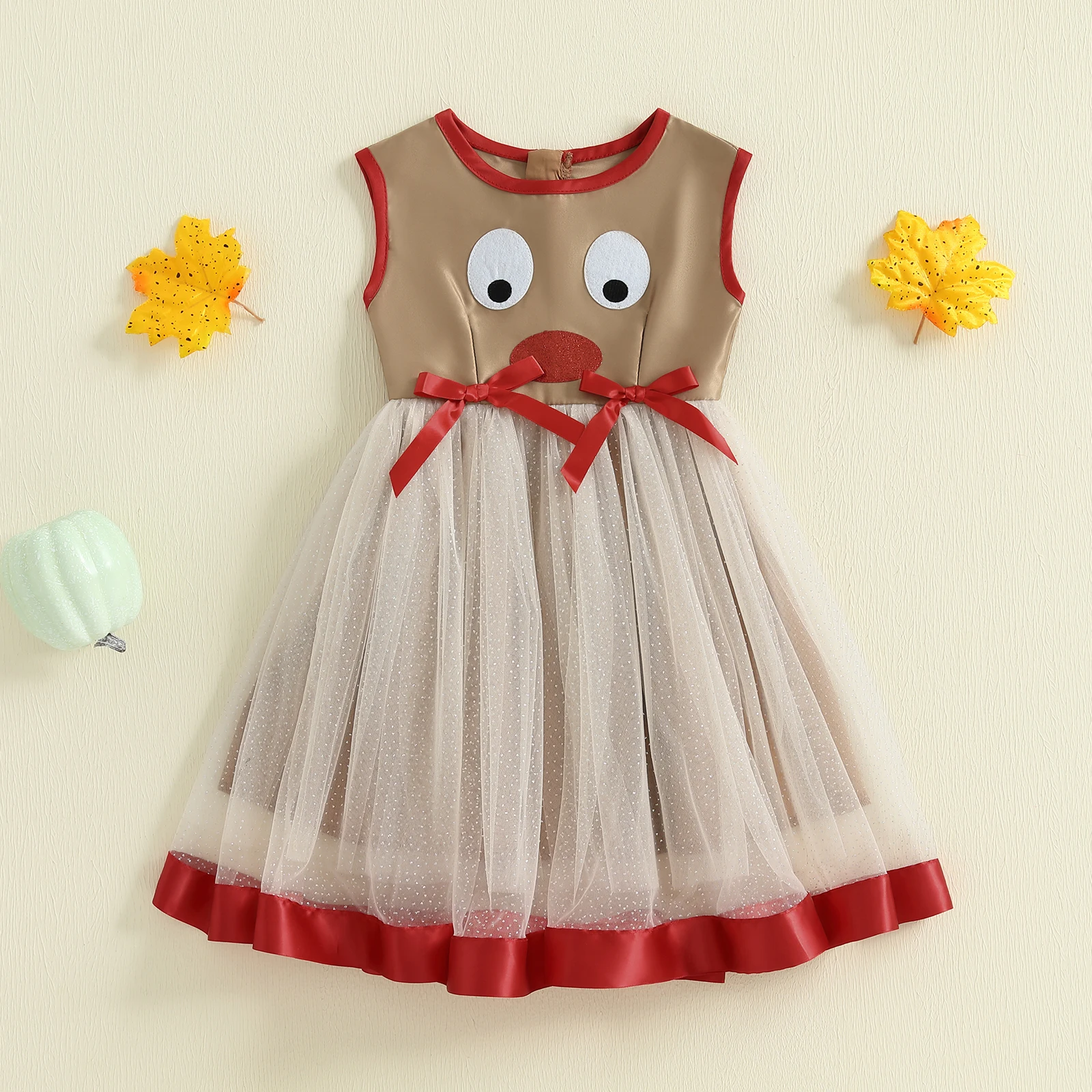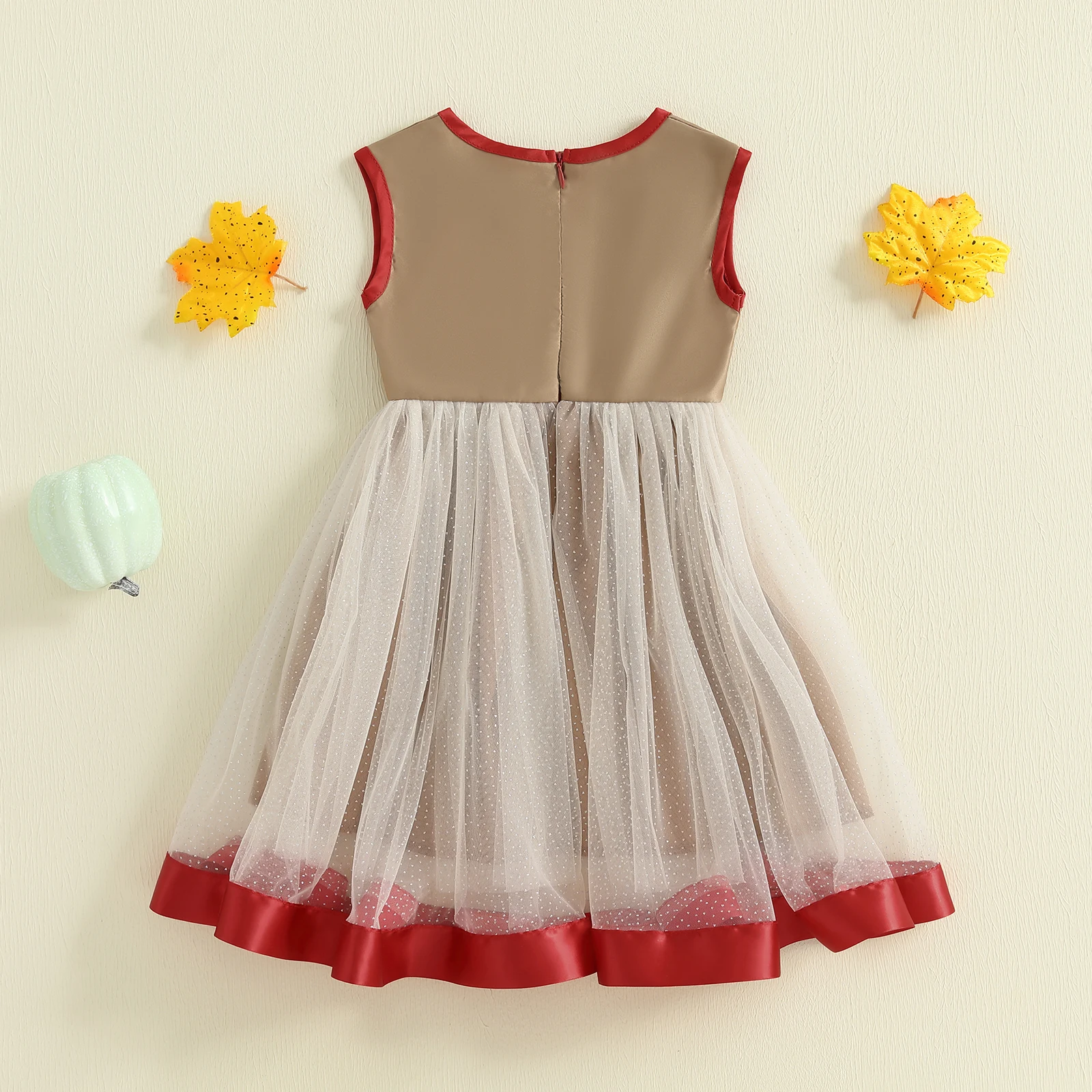 Comprar Vestido de retazos de tul sin mangas con cuello redondo y estampado de pavo para niña pequeña de Acción de Gracias