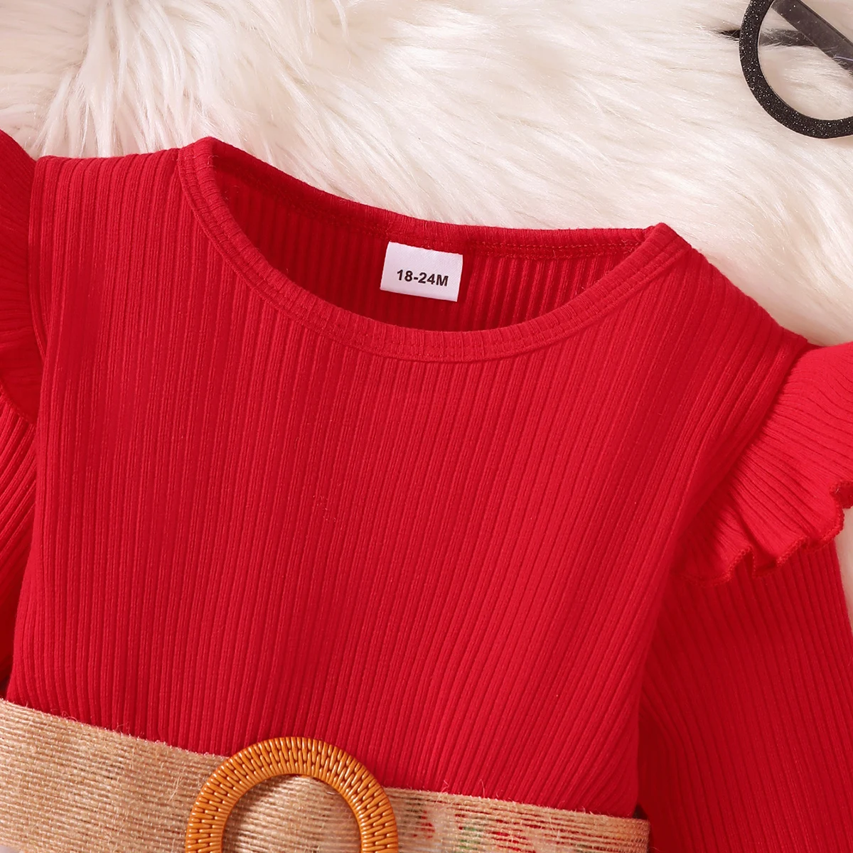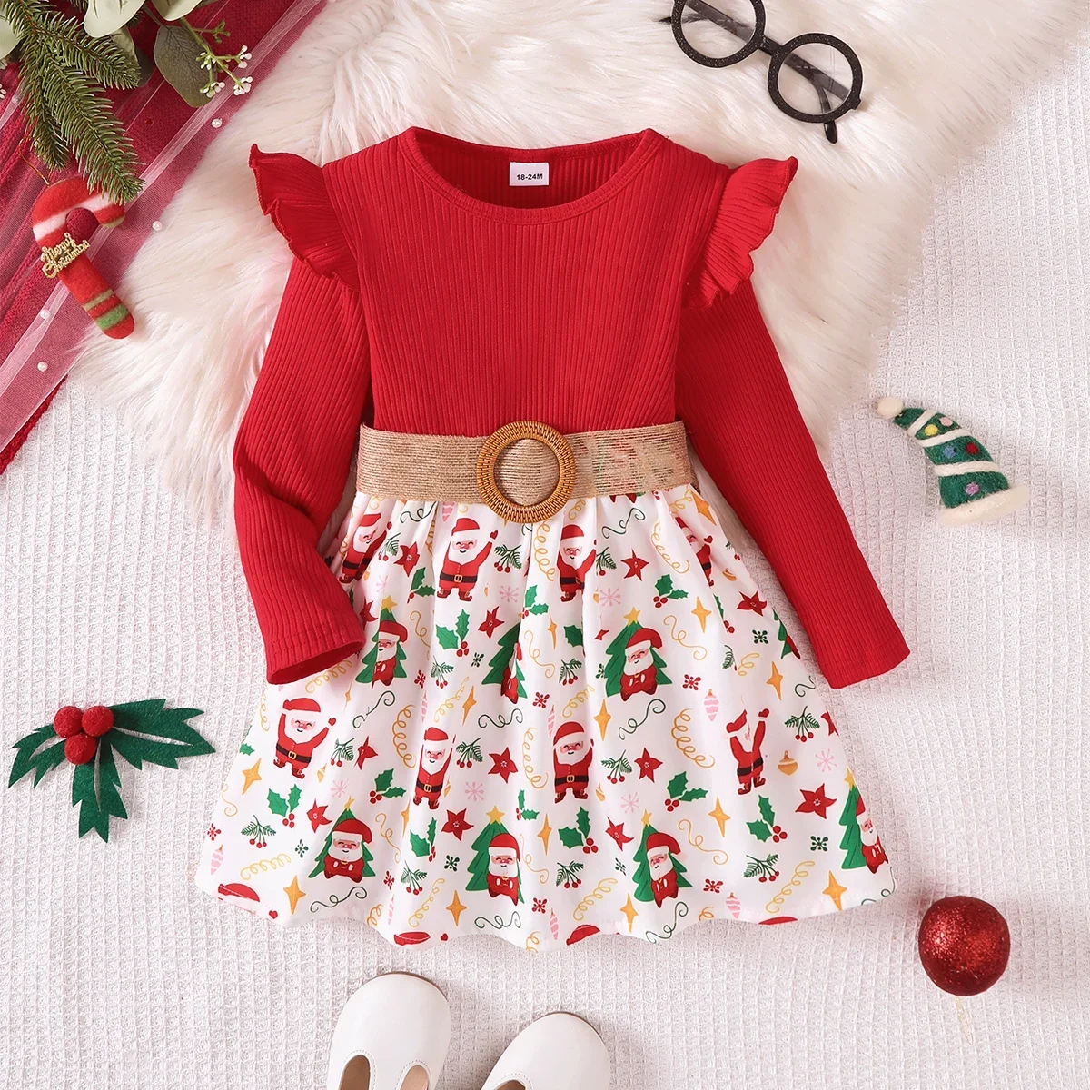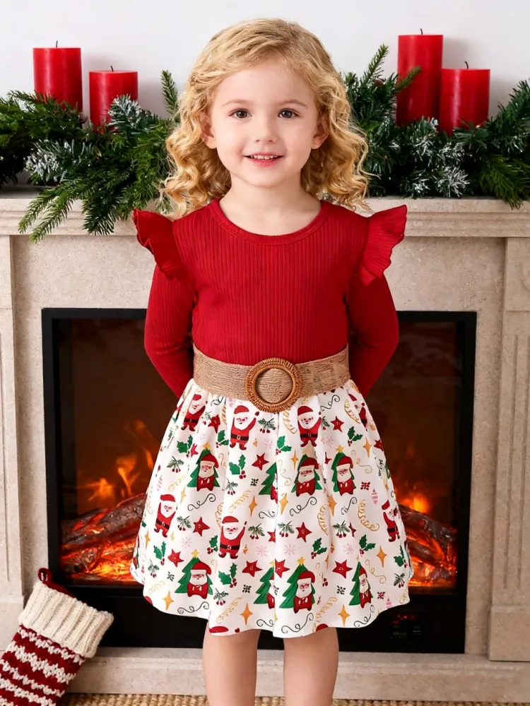 Vestido rojo de manga larga para niñas de 1 a 7 años, vestido de Navidad que combina con cinturón, vestido de Año Nuevo, disfraces de Festival, ropa de otoño e invierno