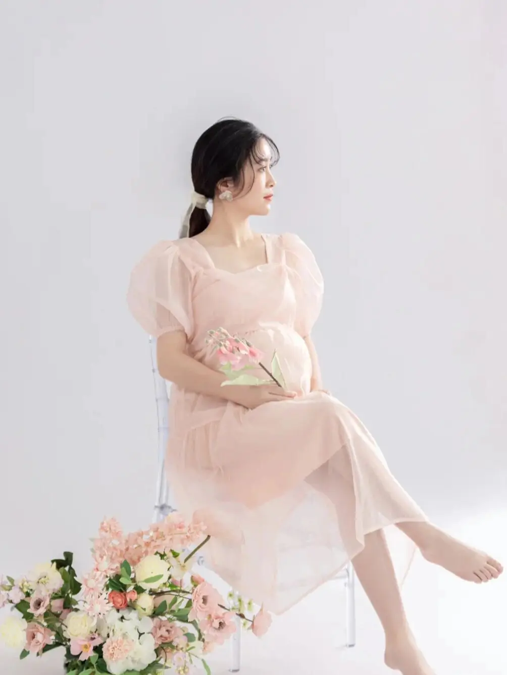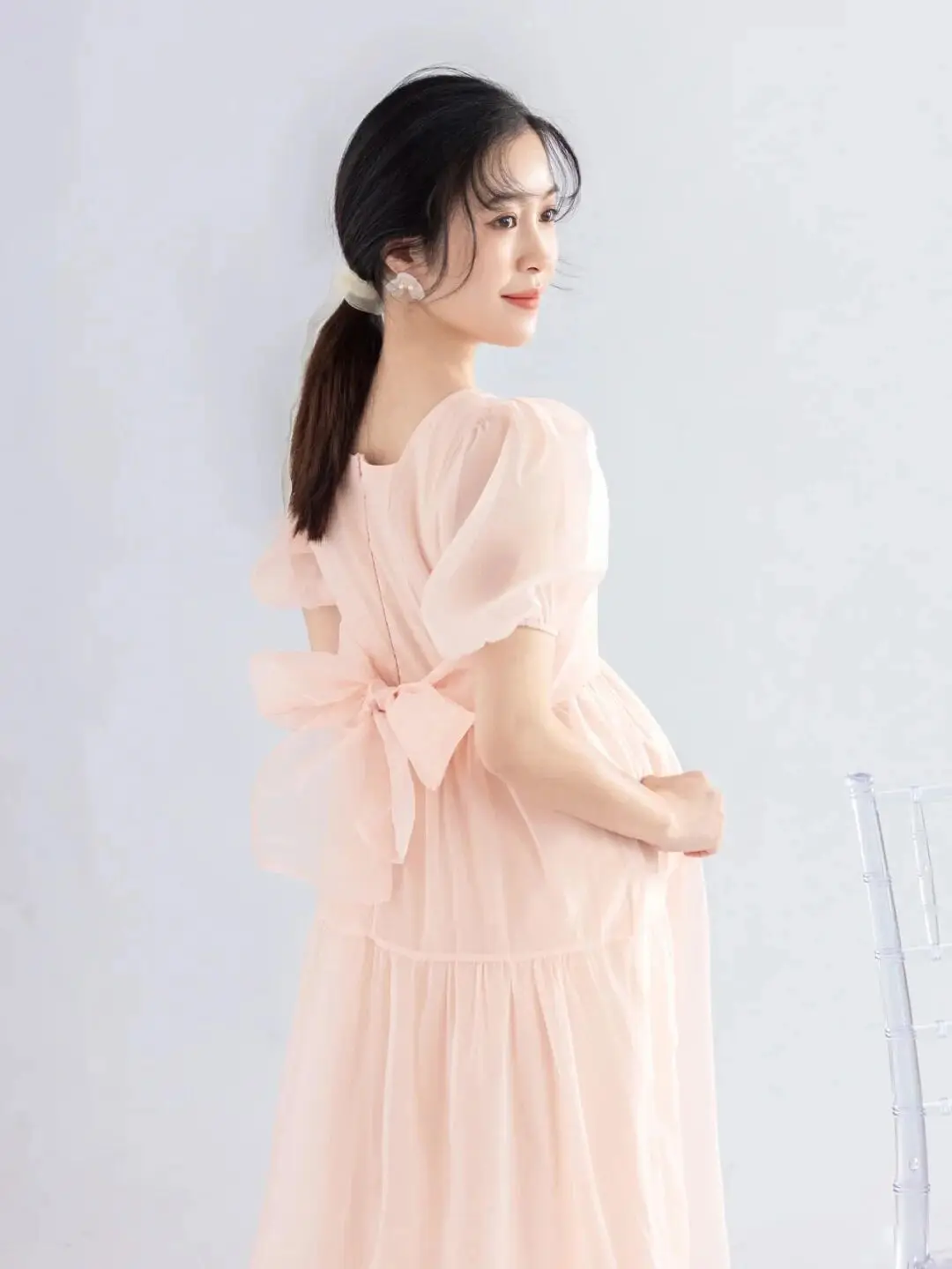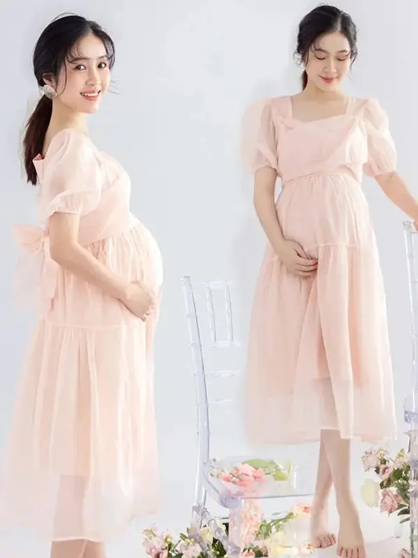 Comprar Vestido rosa de manga corta, vestidos para fotos de maternidad, vestido para sesión de fotos de embarazo, vestido largo de malla