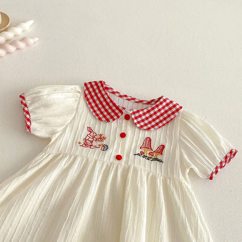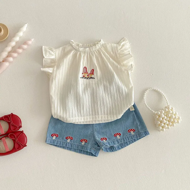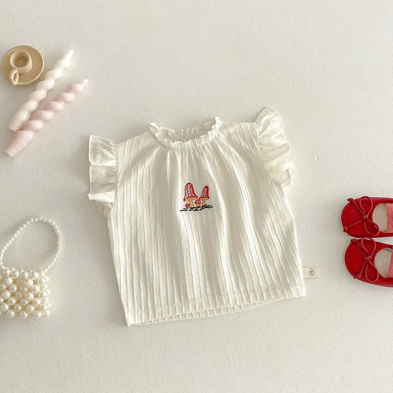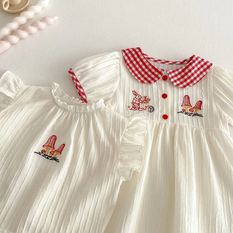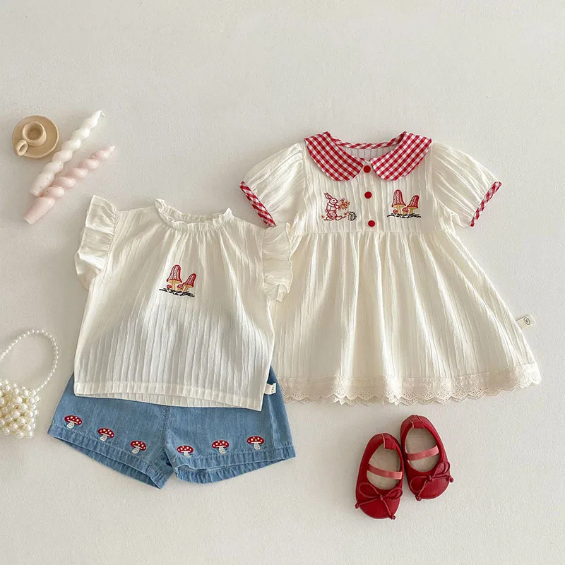 1.**Bordado exquisito**: esta camisa para niños presenta encantadores bordados de lindos champiñones y un conejo divertido, añadiendo un toque caprichoso y único.El bordado detallado destaca entre la tela suave, haciendo que su hijo luzca adorable.