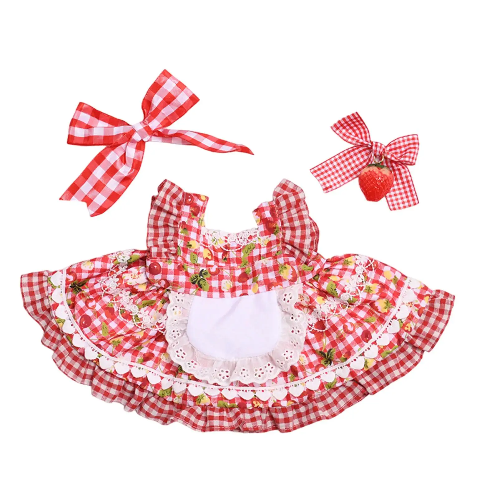 Amplia aplicación: el vestido de fresa con cuadros rojos se puede utilizar para decorar muñecas, tomar fotografías de escenas, hacer regalos hechos a mano, etc., adecuado para varias escenas.