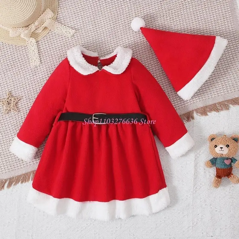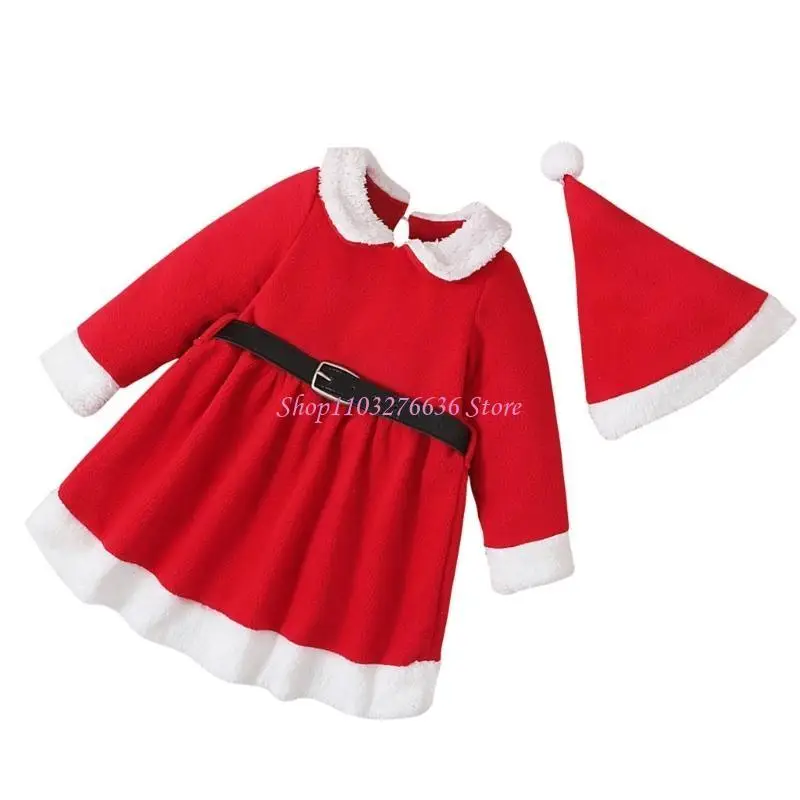 Vestido y sombrero manga larga Navidad para bebé R6FD, disfraz temático Papá Noel para Festival, traje temporada
