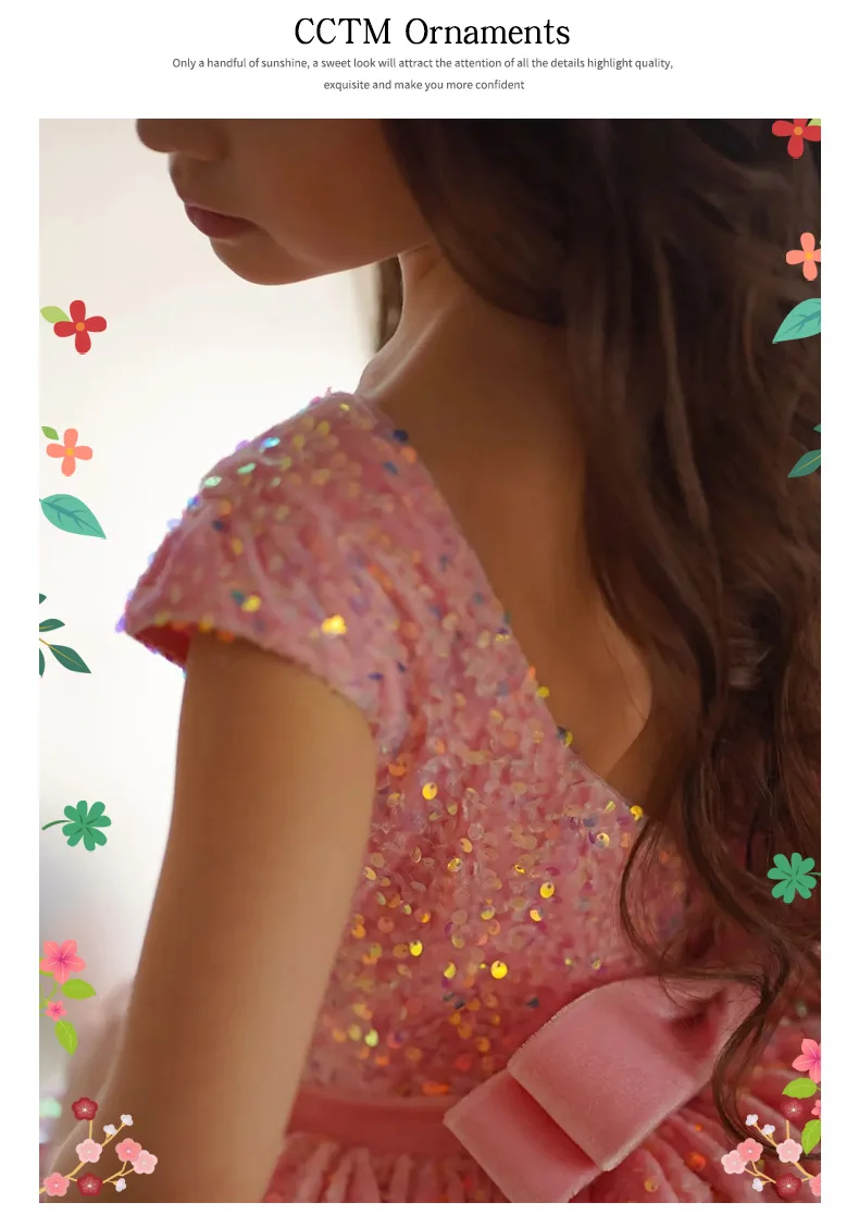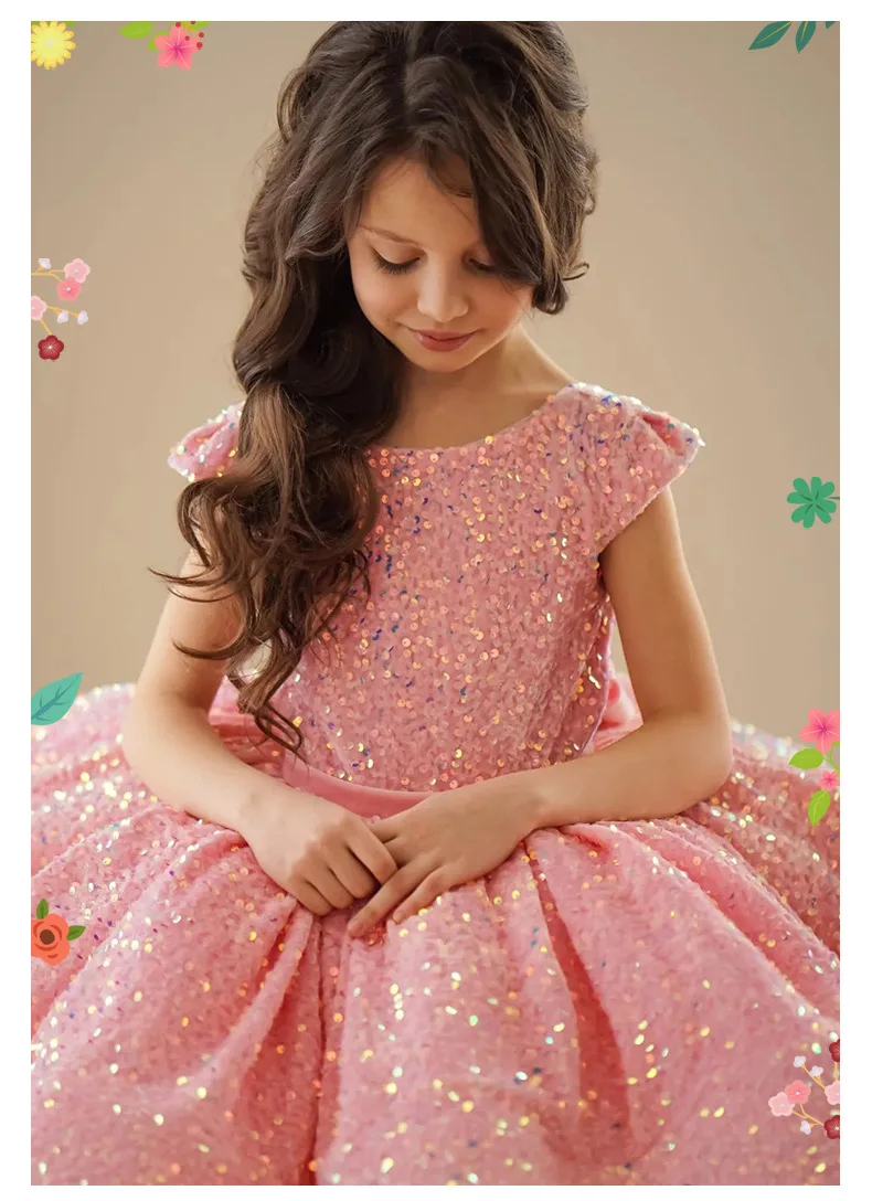 Vestido de terciopelo con lentejuelas para niñas, vestido Formal brillante para dama de honor, fiesta de boda, cumpleaños, desfile para niños, vestido de fiesta de graduación de princesa