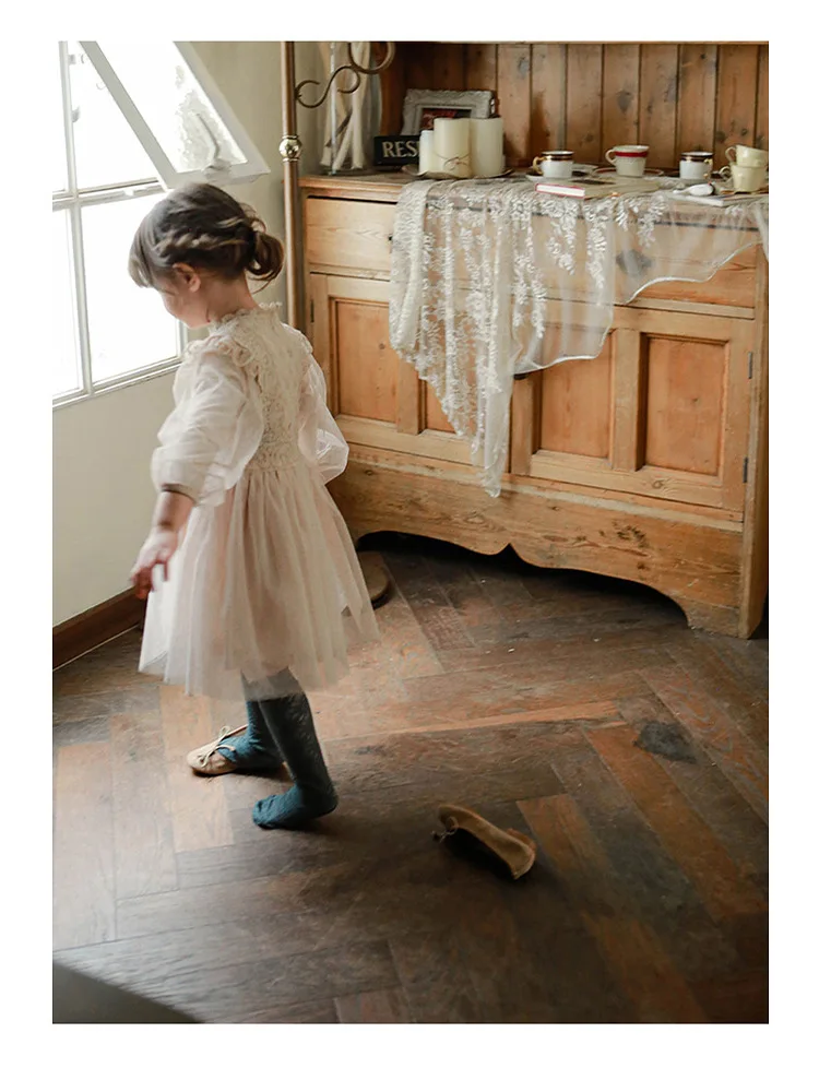 Comprar Vestido de tul de manga acampanada para niña, ropa de verano Coreana de malla, elegante, 2022