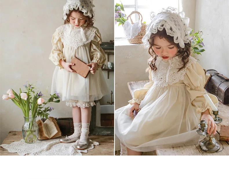 Comprar Vestido de tul de princesa esponjoso de encaje para niñas, ropa de moda para bebés, vestidos de manga larga para niños, primavera y otoño, 2024