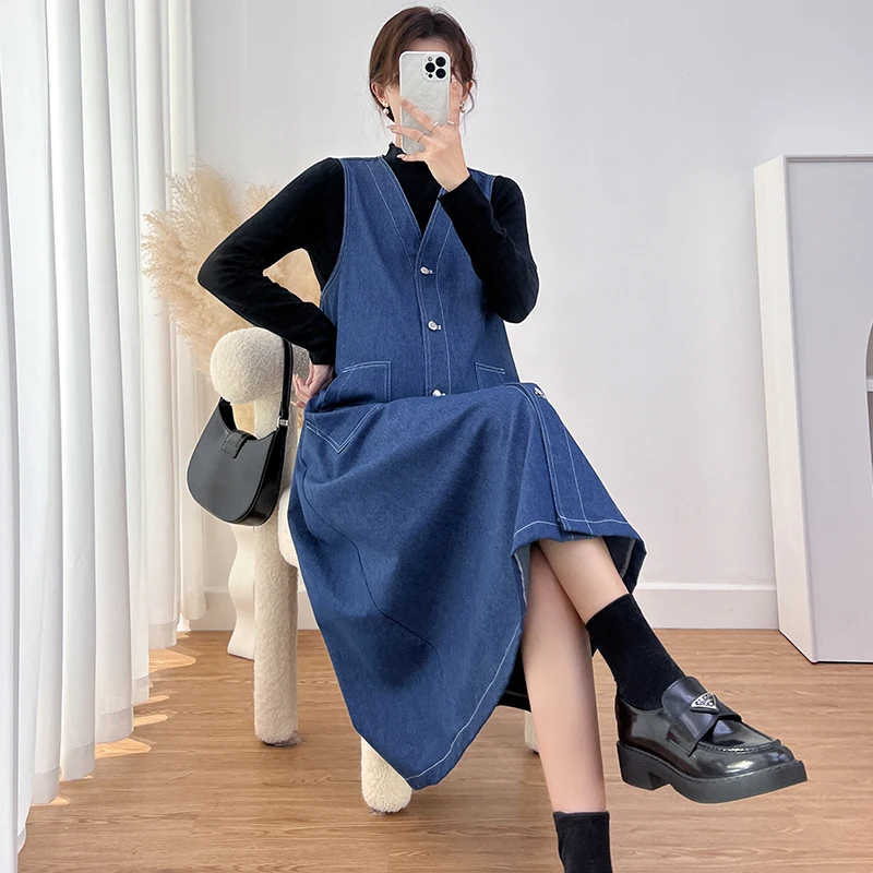 Comprar Vestido vaquero de maternidad para mujer, conjunto de camisa de punto, ropa recta holgada, informal, embarazo, Invierno