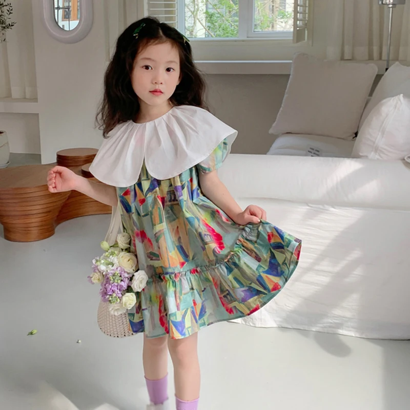 Comprar Vestido de verano de estilo coreano para niña, dulce vestido de pintura al óleo, estampado de Graffiti, vestido de fiesta para niña de princesa, agradable a la piel