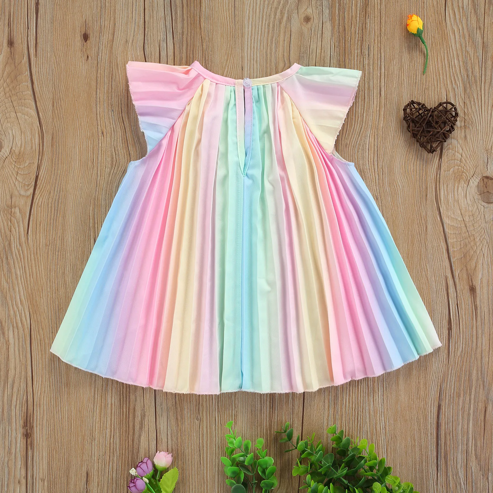 Comprar Vestido de verano de manga voladora para niña, ropa holgada con estampado de arcoíris, estilo dulce