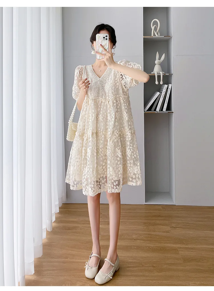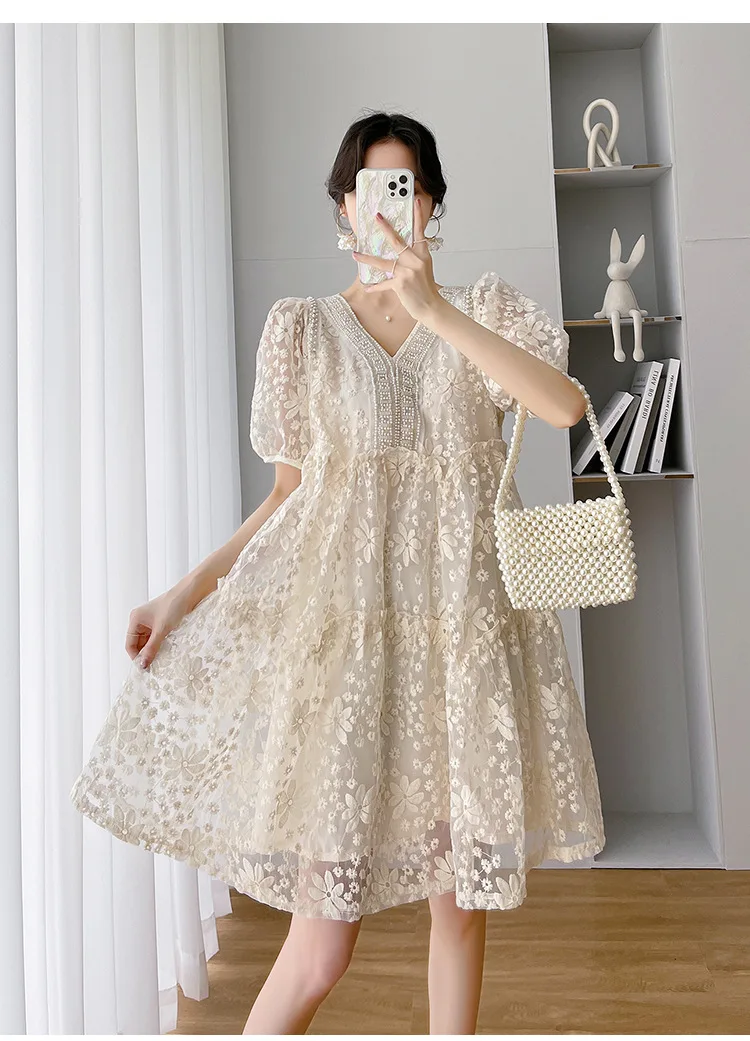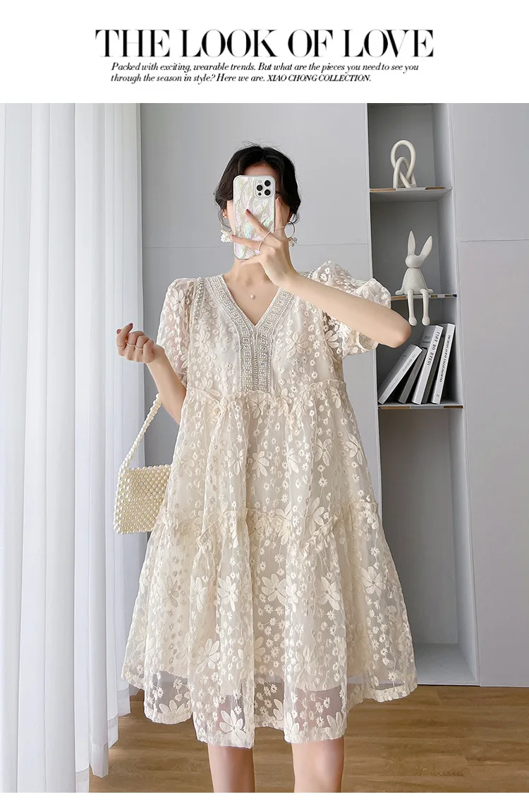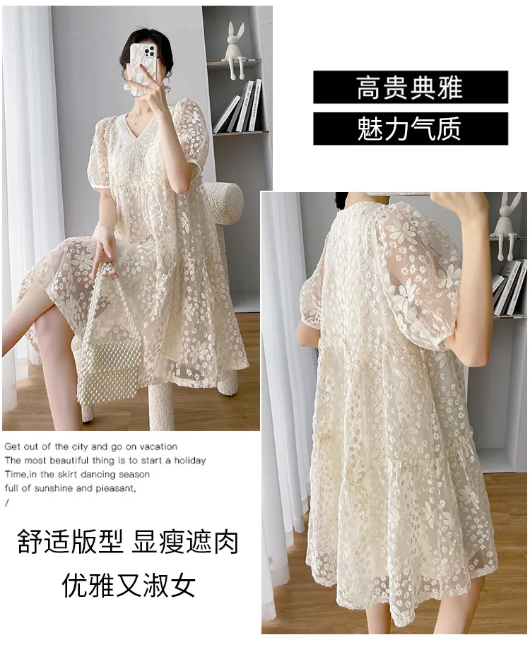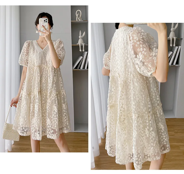 Vestido de verano de maternidad nueva moda vestido de manga corta de encaje bordado suelto Casual dulce elegante vestido de ropa de maternidad