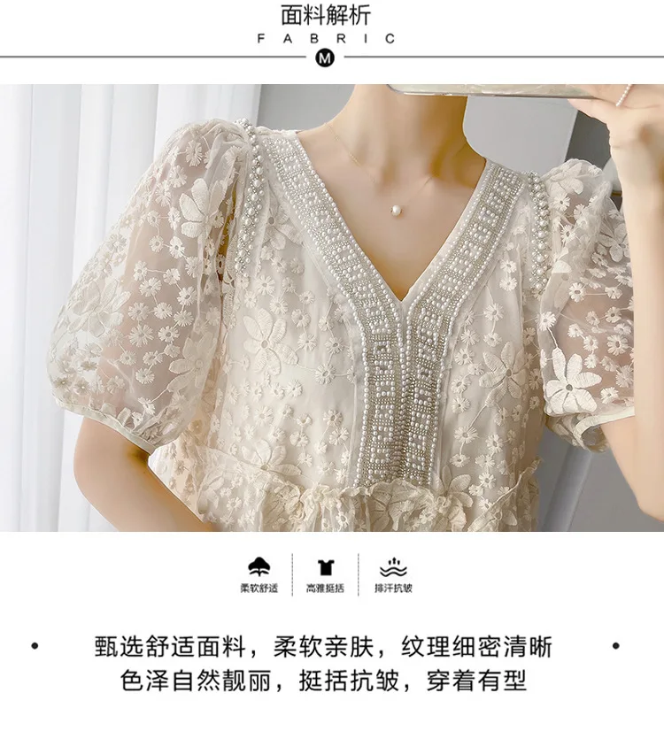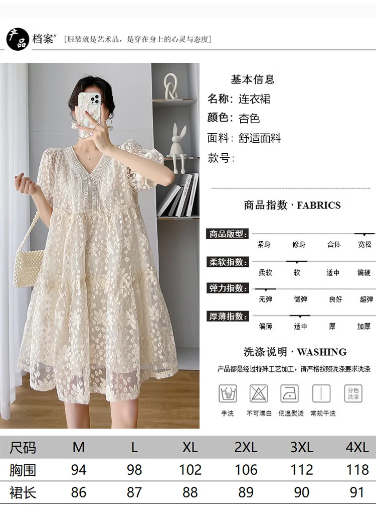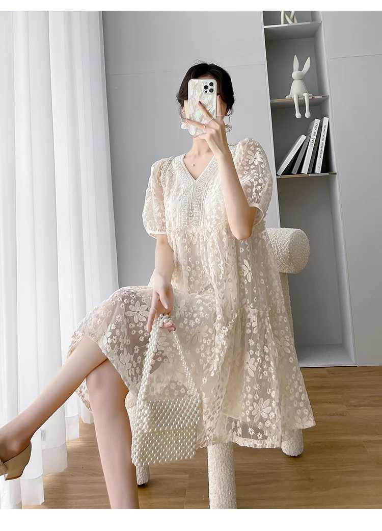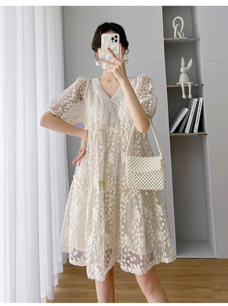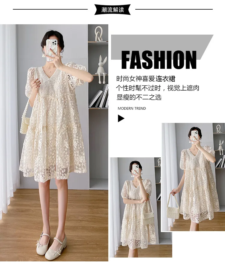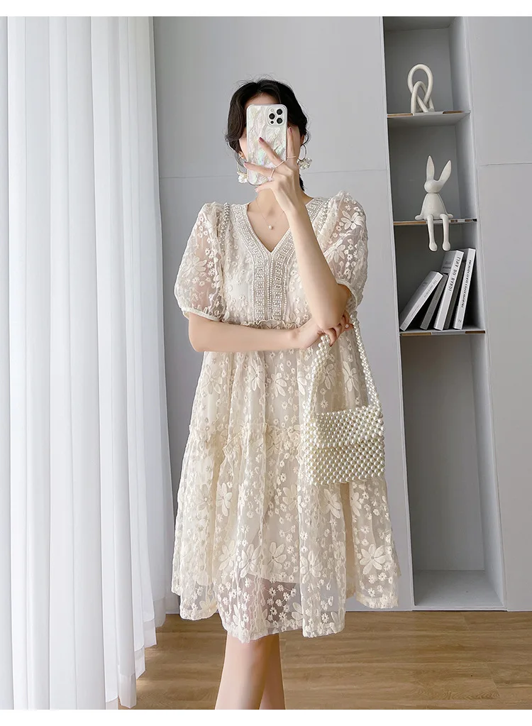 Vestido de verano de maternidad nueva moda vestido de manga corta de encaje bordado suelto Casual dulce elegante vestido de ropa de maternidad