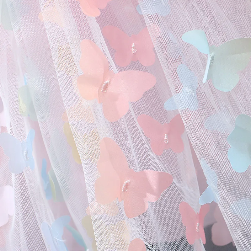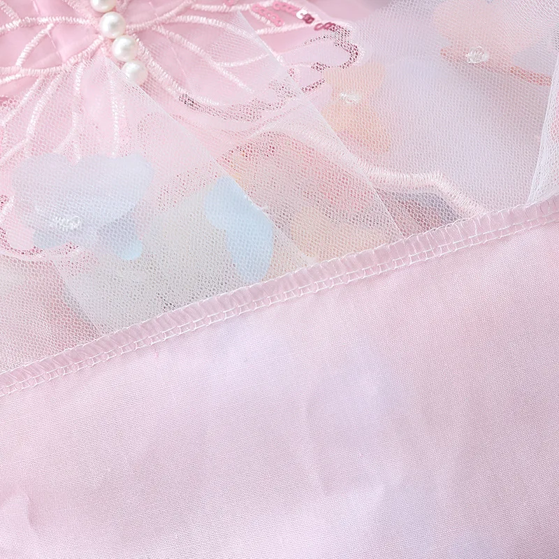 Vestido de verano para niñas pequeñas, dulce princesa, bordado de flores, volantes, sin mangas, lazo, tul, vestido de fiesta para niños pequeños con alas