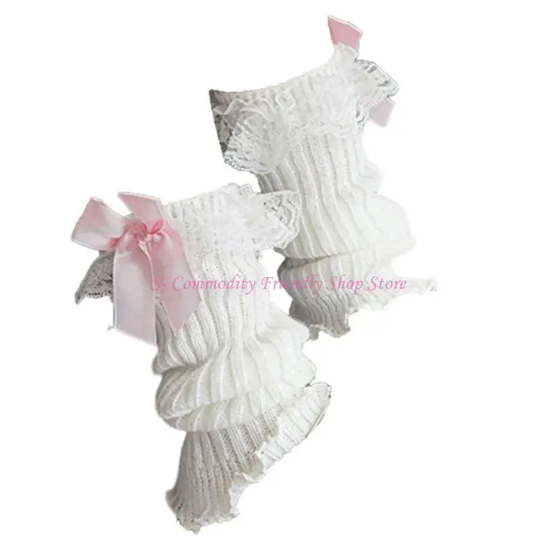 Mejora los estilos de tu pequeña con estos calentadores de piernas de encaje, presentan un encanto blanco decorado con un lazo de encaje para una combinación de ternura y moda.