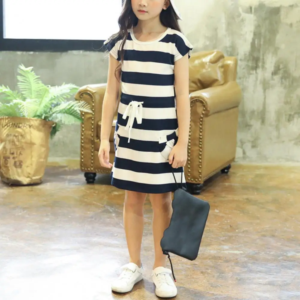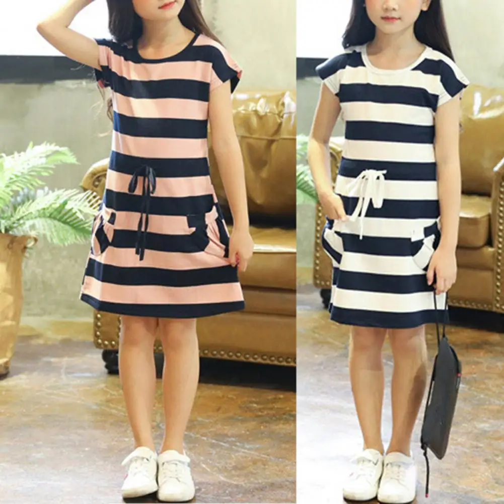 Comprar Vestidos de algodón para niñas, ropa informal a rayas, agradable a la piel, de verano