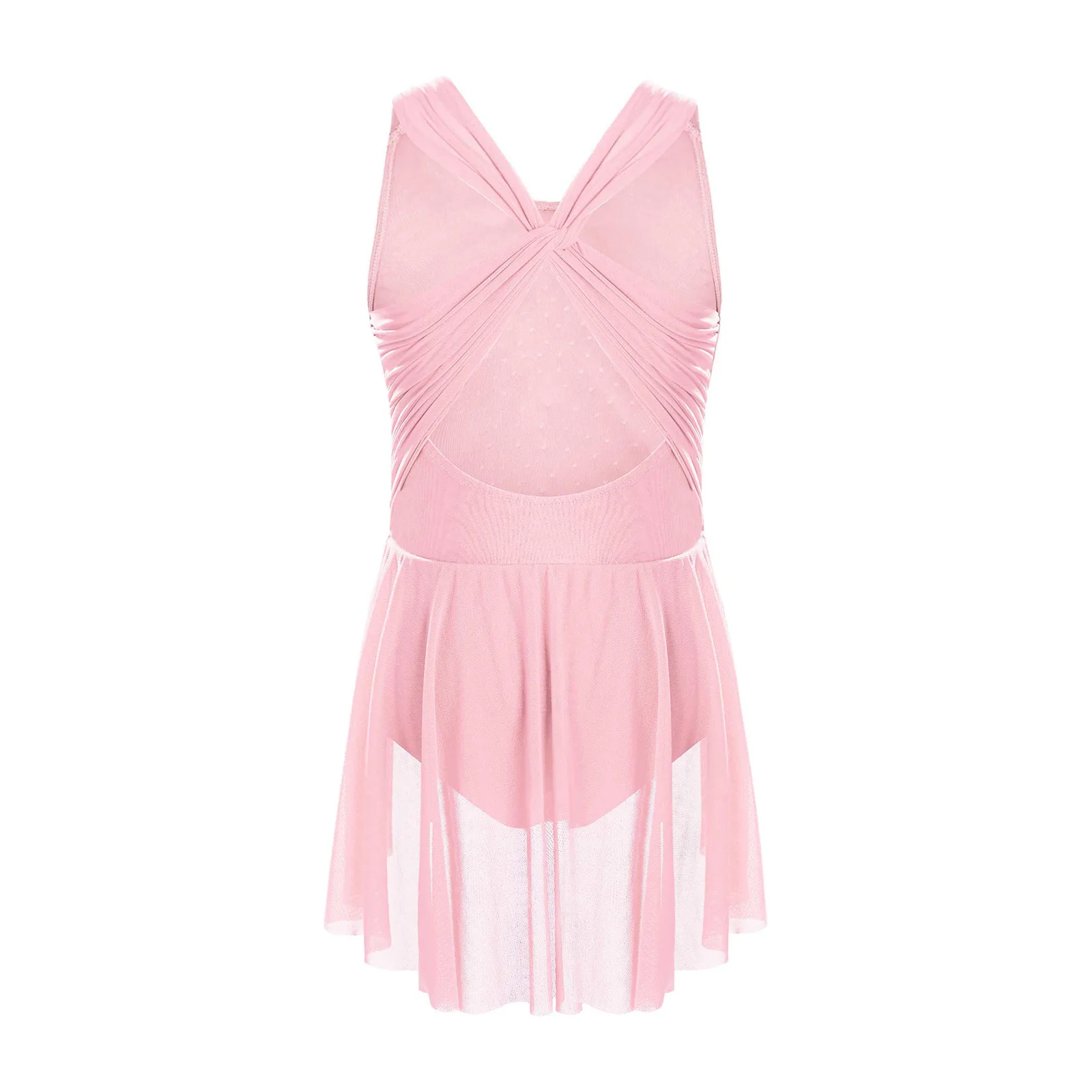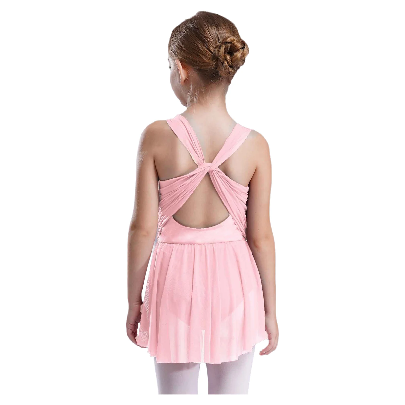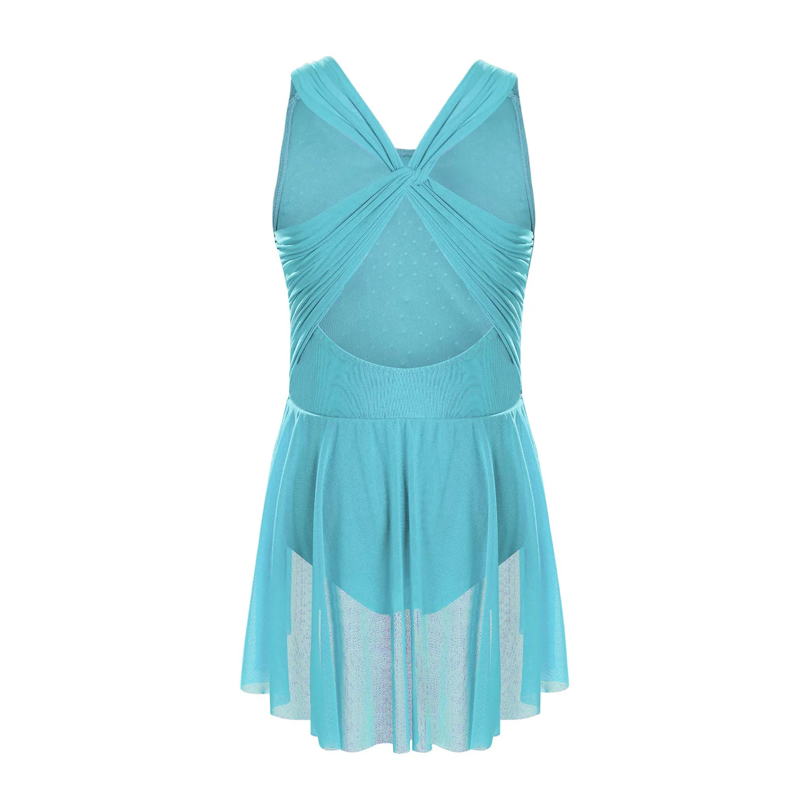 Comprar Vestidos de baile lírico para niñas, vestido de leotardo de gimnasia y Ballet, malla cruzada, recorte en la espalda, diamantes de imitación, Ropa de baile de patinaje Irregular