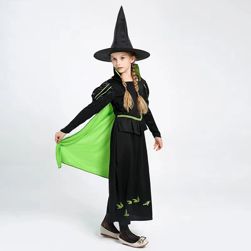Halloween children's dress evil witch play costume with hat, complete size, you can refer to the size to choose the right size for yourself